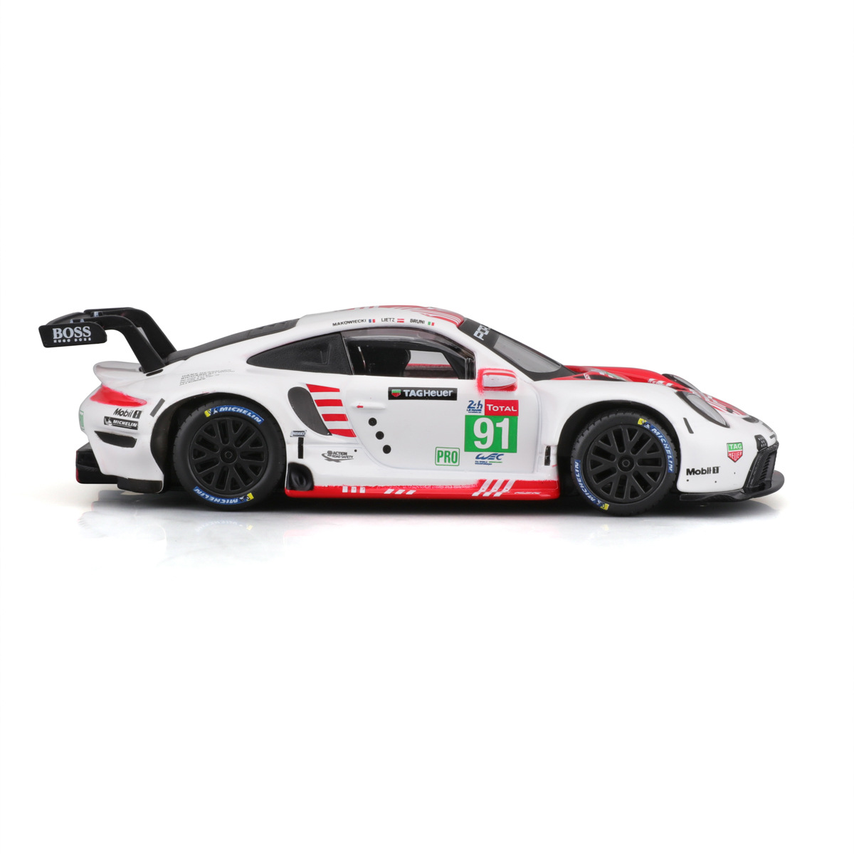 Bburago - RACE, Porsche 911 RSR v dekorativním boxu, červená, 1:43
