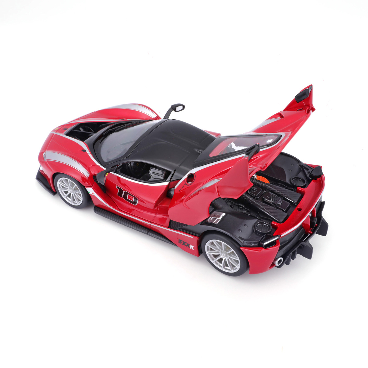 Modely závodních automobilů Ferrari v měřítku 1:24 z kolekce RACING jsou sbírkou krásného designu s vysokým důrazem na přesnost detailů. Modely jsou vyrobeny z litého kovu s plastovými detaily. Detailní provedení motorových prostor a interiéru. Většina modelů z kolekce má otevírací dveře, kufr nebo kapotu. Některé z modelů mají funkční řízení. Každý z modelů je v závodním designu a se závodním číslem. Model je namontován na výstavním stojánku. Baleno v krabičce. Nevhodné pro děti do 3 let. Rozměry balení: 10,3 x 24,5 x 12,6 cm. Věk: 14+