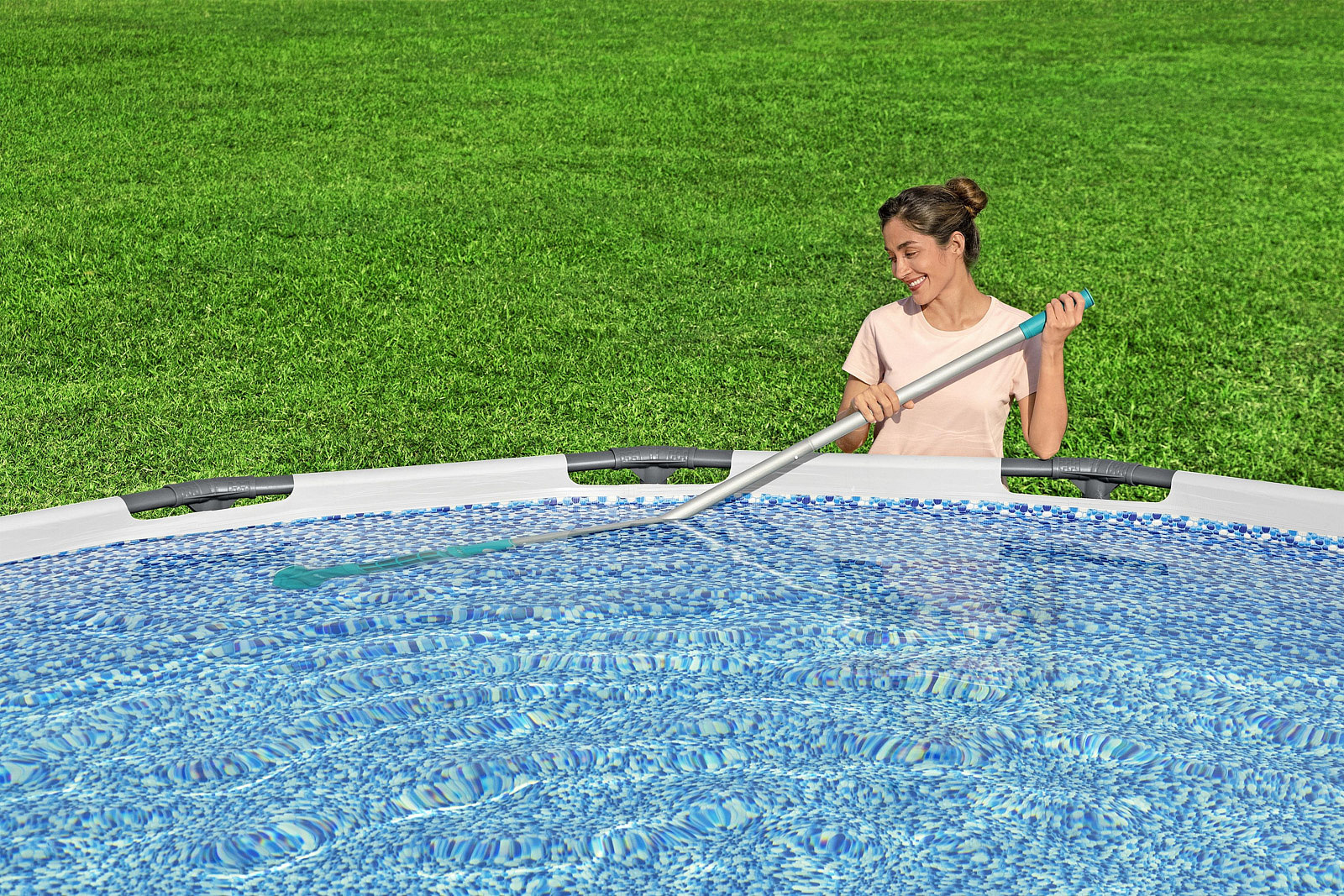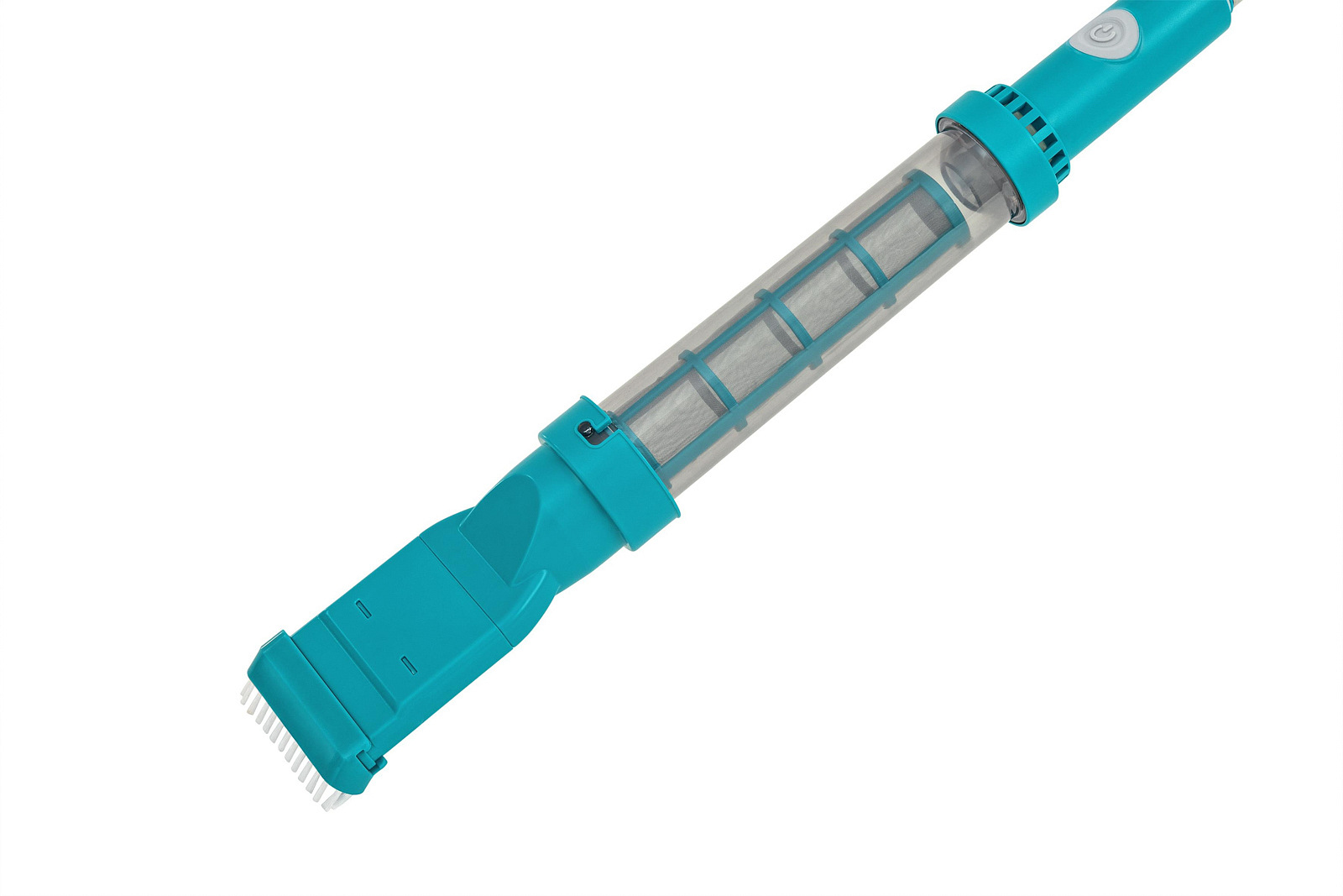 Objevte novou úroveň péče o bazén s akumulátorovým bazénovým vysavačem Bestway® AquaSurge™. Tento vysavač je ideální pro bazény o průměru až Ø 610 cm a představuje spojení vysoké účinnosti a maximálního komfortu pro dokonale čistou a průzračnou vodu. Díky bezdrátovému provedení je čištění bazénu mimořádně jednoduché. AquaSurge™ se aktivuje pouhým stisknutím tlačítka a zajistí důkladné čištění, které vás zbaví nečistot na dně bazénu bez námahy. Vysavač je vybaven integrovanou dobíjecí baterií, která poskytuje výdrž až 50 minut provozu. Doba nabíjení je přibližně 4–5 hodin, takže je zařízení vždy připraveno k použití, když ho potřebujete. Díky 3dílné teleskopické tyči se AquaSurge™ snadno přizpůsobí velikosti a potřebám vašeho bazénu. Tyč lze navíc kombinovat s dalšími čisticími nástroji a příslušenstvím o průměru Ø 30 mm, což zvyšuje univerzálnost při údržbě bazénu. Průhledná nádoba na nečistoty s objemem 0,54 litru umožňuje snadnou kontrolu naplnění. Pro důkladné čištění stěn a rohů ba