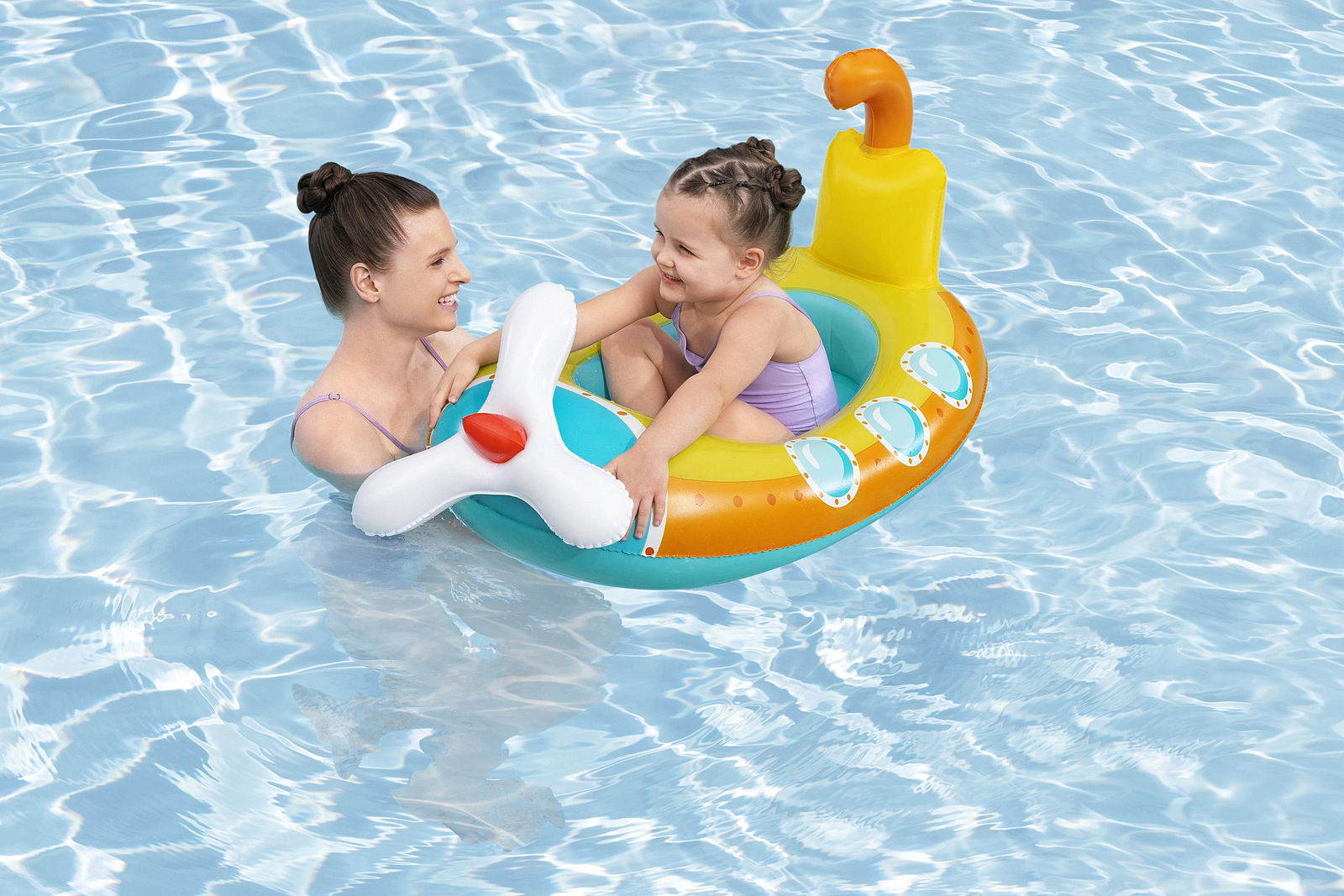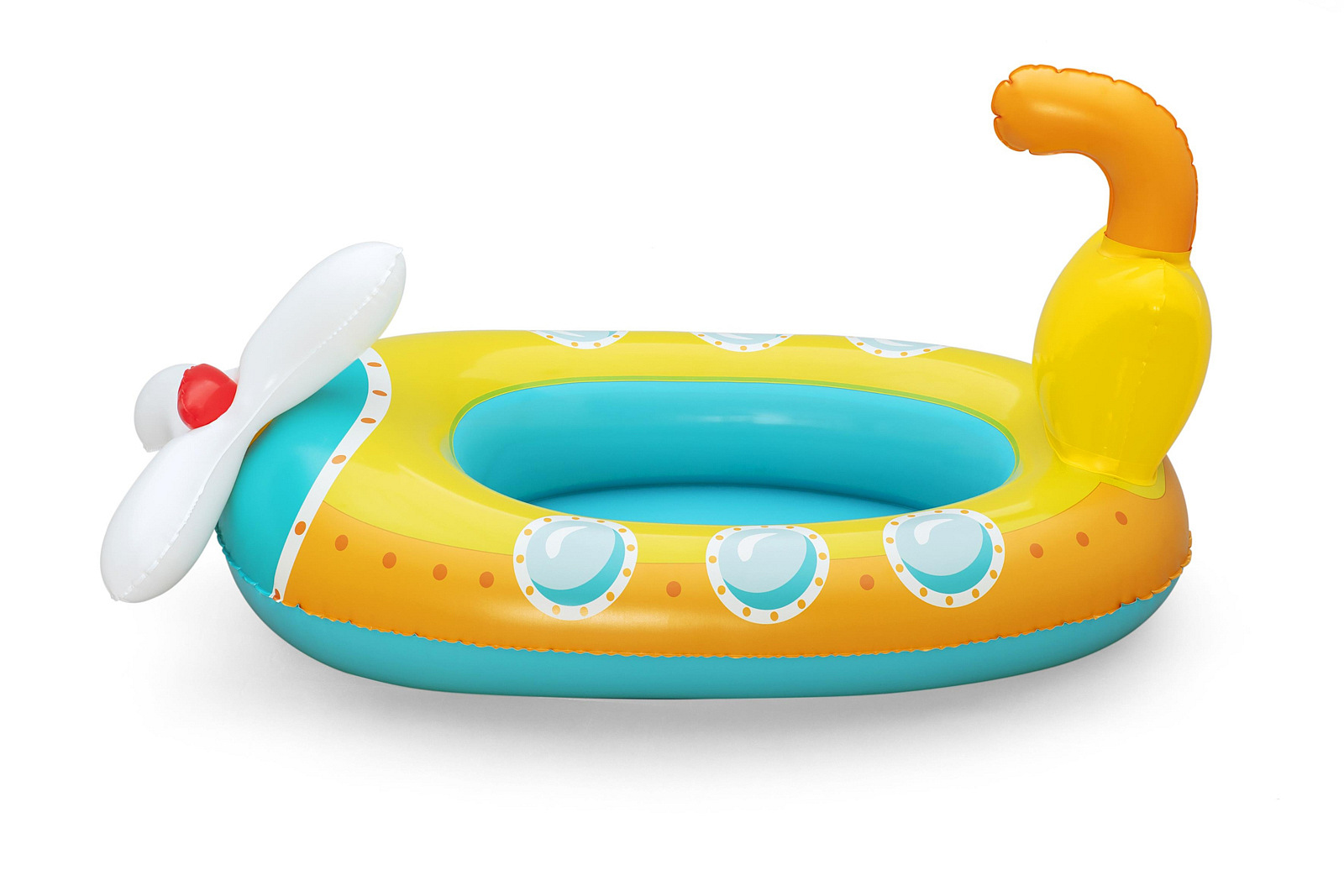 Bestway® Dětský nafukovací člun se stříškou Space Splash™ je ideální pro děti od 3 let. Člun má sluneční clonu blokující UV záření, která chrání jemnou dětskou pokožku, a je snadno odnímatelná díky uchycení na suchý zip. Děti se do člunu mohou snadno dostat a vystoupit. Člun je vybaven volantem s klaksonem. Průhledové okénko umožňuje speciální pohled pod vodní hladinu. Tři vzduchové komory a bezpečnostní ventily dodávají této dětské loďce stabilitu a bezpečnost. Nafouknutá velikost člunu: 61 x 95 x 98 cm. Nenafouknutá velikost člunu: 107 x 112 cm. Rozměry balení: 24 x 24 x 8,5 cm. Určeno pro 1 osobu. Maximální nosnost: 45 kg. Používejte pouze pod dohledem dospělé osoby. Věk: 3+