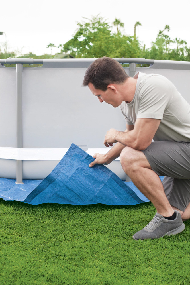 Mata pod basen zapewnia lepszą ochronę dla dna basenu. Chroni dno basenu przed mechanicznym uszkodzeniem przez twarde i ostre przedmioty. Kompatybilny z basenami naziemnymi o średnicy do 4,57 m. Materiał: PE. Wymiary maty: 488 x 488 cm.