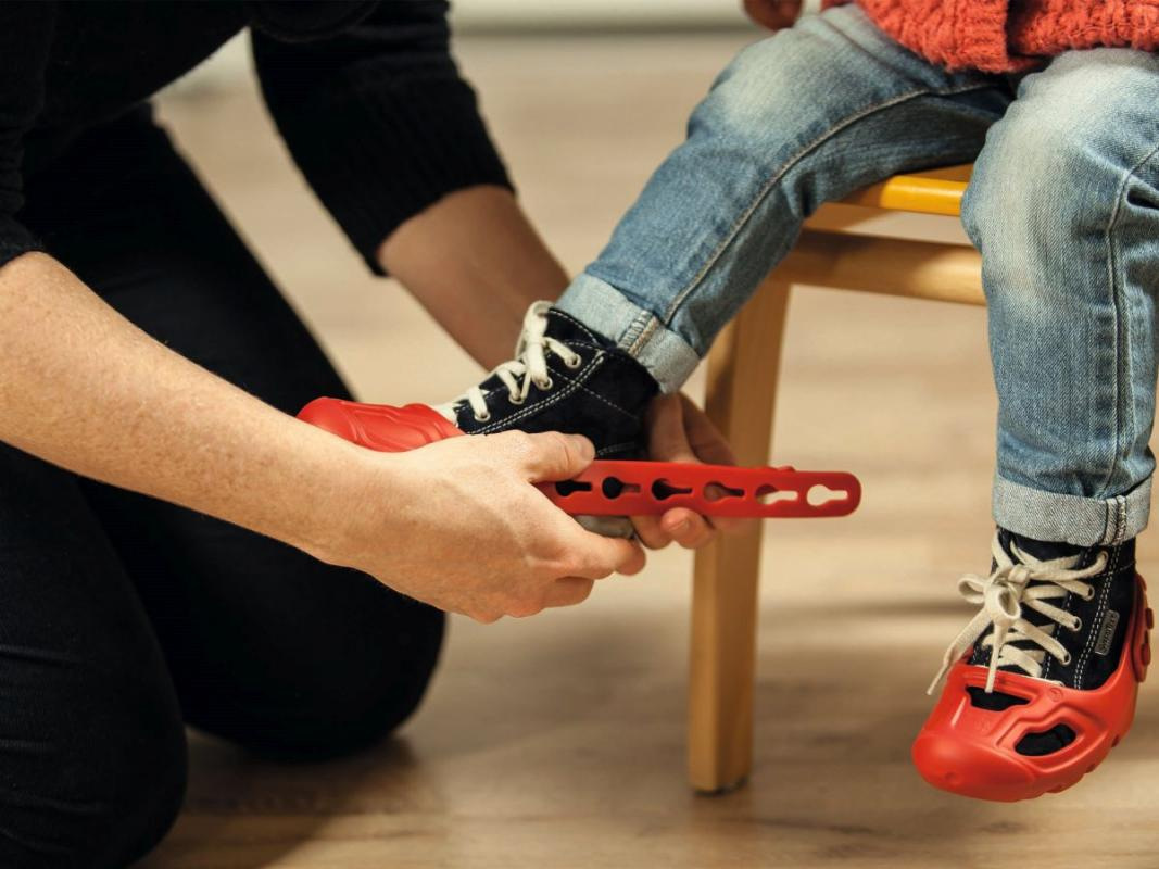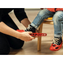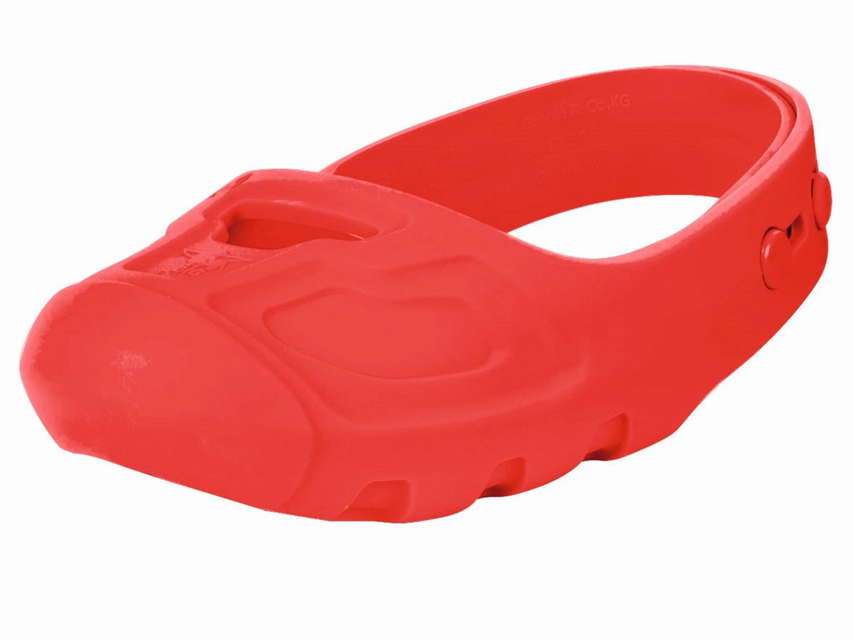 Czerwone ochraniacze na buty do jazdy konnej, np. na rowerze, rowerze itp. Nie pozostawia śladów na podłodze, antypoślizgowe wykończenie. Łatwo regulowany rozmiar za pomocą haczyków i oczek. Odpowiednie do butów dziecięcych w rozmiarze 21-27.