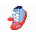 Niebieskie ochraniacze na buty do jazdy konnej, np. na rowerze, rowerze itp. Nie pozostawia śladów na podłodze, antypoślizgowe wykończenie. Łatwo regulowany rozmiar za pomocą haczyków i oczek. Odpowiednie do butów dziecięcych w rozmiarze 21-27.