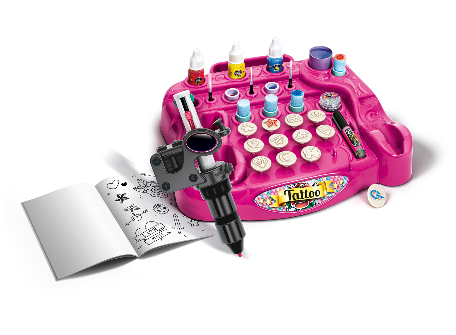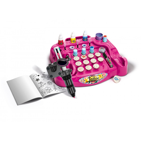 Dla miłośników tatuaży, super fajny zestaw do tworzenia niesamowitych tatuaży odręcznie lub według szablonu! Za pomocą specjalnego długopisu do ciała z wymiennymi kolorowymi końcówkami dziewczyny mogą bawić się tworzeniem własnych spersonalizowanych tatuaży, rysując je ręcznie lub używając szablonów. Zawiera również farby do ciała do barwienia stworzonych tatuaży, gąbki, aplikatory, szablony oraz książkę z tatuażami z rysunkami, wskazówkami i pustymi kartkami, abyś mógł stworzyć swoje ulubione tatuaże! Rozwija kreatywność i zręczność. Wymiary opakowania: 45,1 x 31,1 x 7 cm Wiek: 7+