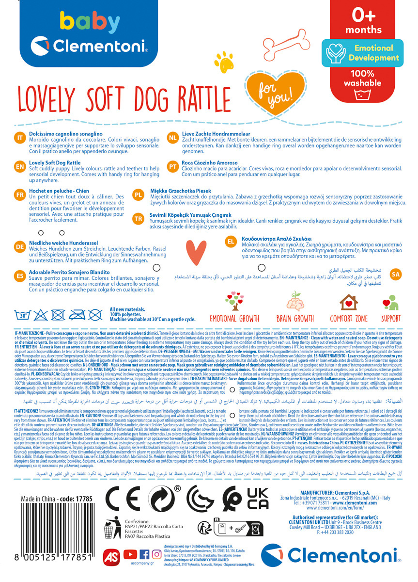 Clementoni Pluszowa grzechotka z uchwytem - Szczeniak