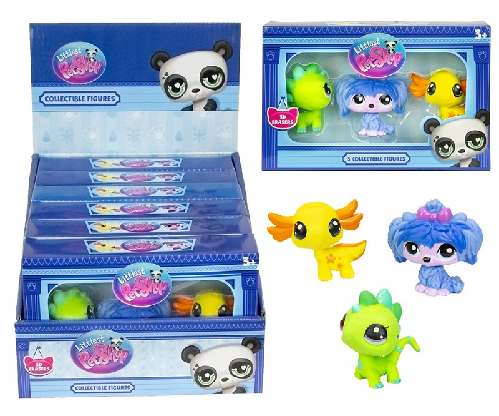 Roztomilé figurky Littlest Pet Shop, které zároveň slouží jako praktické gumy. Tento veselý set 3 barevných zvířátek potěší každého malého fanouška oblíbené značky LPS. Každá figurka má detailní zpracování a hravý design, díky čemuž je ideální nejen na mazání, ale i na hraní nebo sbírání. Skvělé jako drobný dárek nebo překvapení do školního penálu.