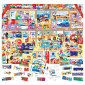 Obsah balení: 108 oboustranných dílků puzzle (složené 60 x 43 cm), 108 samolepek, které lze nalepit a opět odlepit