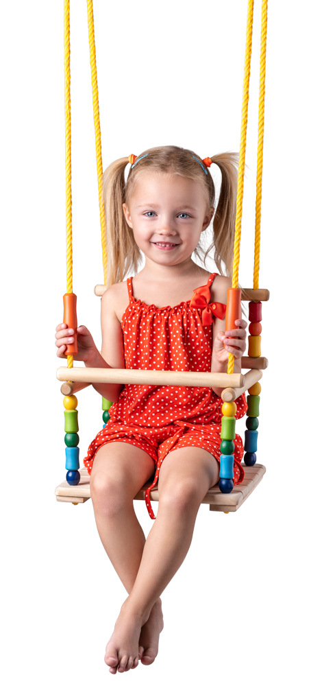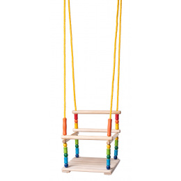 Huśtawka dla najmniejszych dzieci wykonana jest z litego drewna. Jest wyposażony w kojec bezpieczeństwa. Podnoszenie przedniego pałąka kojca ułatwia dziecku wsiadanie i wysiadanie. Huśtawka ma regulowaną długość liny. Nadaje się do użytku w pomieszczeniach i na zewnątrz. Jest przeznaczony do zawieszenia na bezpiecznych (najlepiej obrotowych) hakach, które nie są dołączone do zestawu. Jest to kompensowane przez zwolnienie przewodu. jest przeznaczony wyłącznie do użytku domowego (nie na publicznych placach zabaw). Zabawkę należy zamontować w taki sposób, aby zapobiec jej przewróceniu lub niewłaściwemu użyciu. Nie zaleca się instalowania zabawki na betonie, asfalcie lub innych twardych powierzchniach. Zalecamy ustawienie zabawki w taki sposób, aby dziecko nie było narażone na bezpośrednie działanie promieni słonecznych. Zawsze należy to sprawdzić przed użyciem zabawki. Huśtawka nie może być narażona na bezpośrednie działanie warunków atmosferycznych. Przed każdym użyciem zalecamy sprawdzenie, czy huśtawka jest prawidłowo i bezpiecznie zawieszona. Maksymalny udźwig: 35 kg. Wymiary siedziska: 30 x 30 x 32 cm. Długość lin: 160-220 cm. Rozmiar opakowania: 33 x 8 x 33 cm. Wiek: 3+