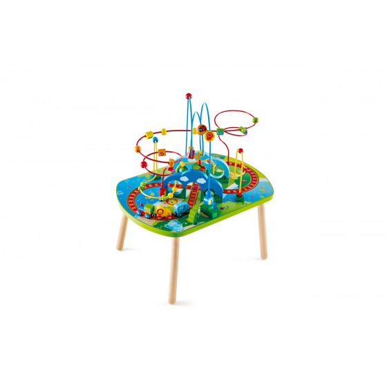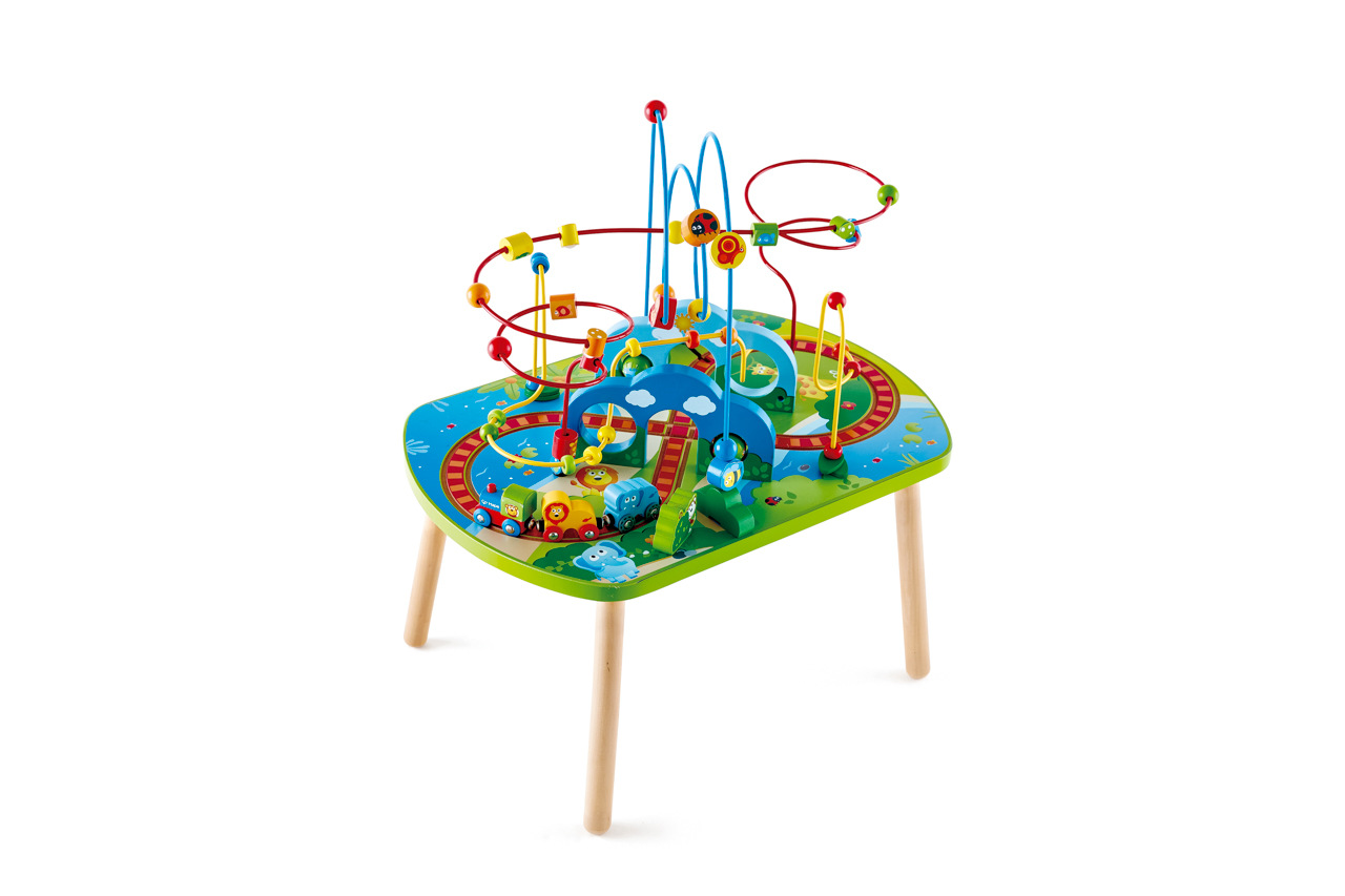 Prozkoumejte džungli a její zvířata na tomto dětském stolečku se spoustou aktivit pro trénink jemné motoriky a představivosti. Projeďte pod oblouky a přimějte ptáčky, aby létali. Ale dávejte si pozor na nezbedné opice, aby vám nezablokovaly cestu! Rozměr výrobku: 60x40x69cm. Počet dílků: 5. Věk: 18m+