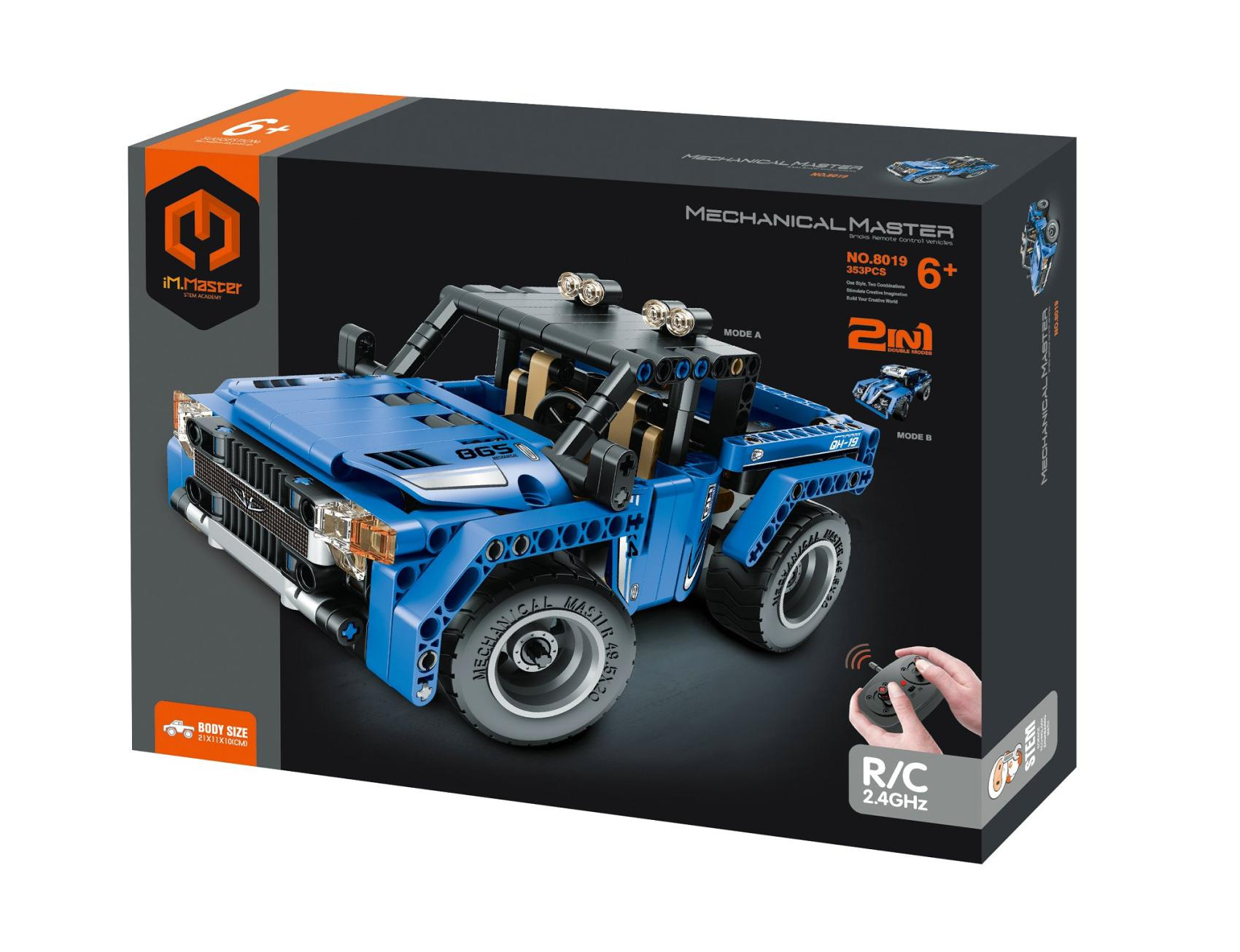 Se stavebnicí iM.Master si děti postaví vlastní terénní vůz na dálkové ovládání. A co víc – díky 2v1 konstrukci si mohou vybrat ze dvou různých modelů (terénní pick-up nebo sportovní buggy). Ovládání probíhá přes 2,4 GHz dálkový ovladač, který zajišťuje plynulou jízdu bez rušení signálu. Stavebnice obsahuje 353 plastových dílků a je ideální pro všechny malé techniky a nadšence do aut. Sestav si svůj vlastní RC model, vlož baterie a vyraz vstříc dobrodružství. Rozměry balení 35 x 27 x 7 cm Vhodné pro děti od 6 let