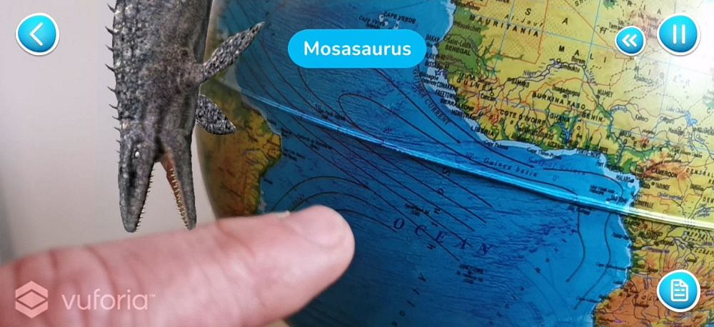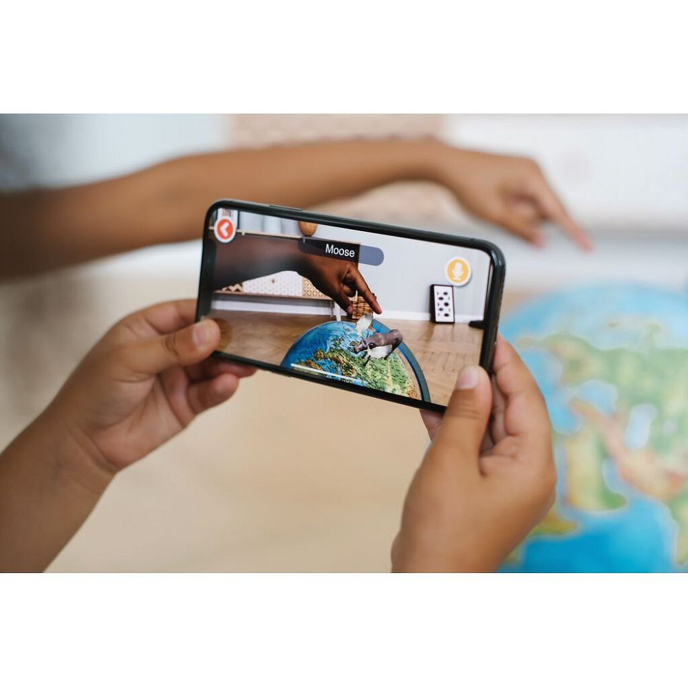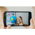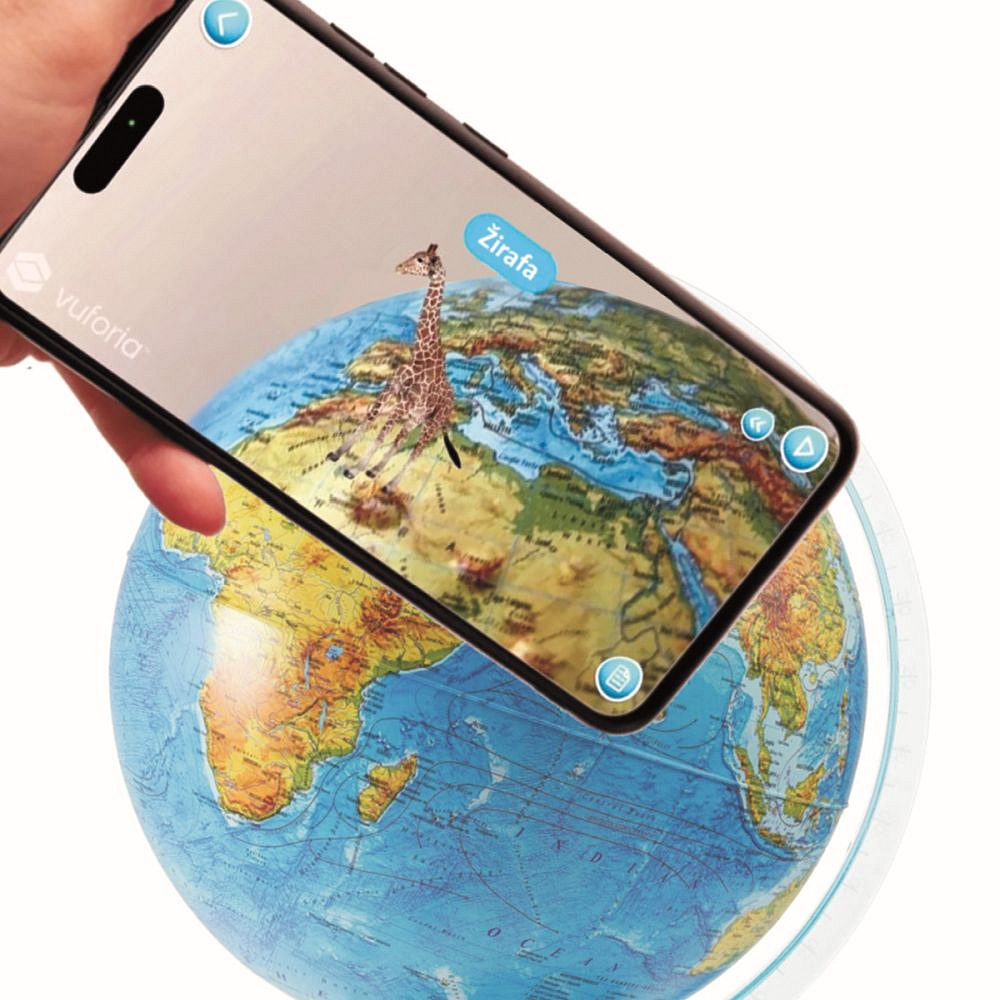 Mobilní aplikace IQ Globe: Mobilní naučná aplikace IQ-Globe obsahuje 10 témat: - Suchozemská fauna flóra, Pangea - počátek země, Dinosauři, Mořský život, Sluneční soustava a vesmír, Kosmodromy, Světové pamětihodnosti, Přírodní monumenty, Země světa a vlajky, Legendární objevitelé. V aplikaci si můžete zvolit 12 různých jazyků včetně češtiny. Pro načtení zeměkoule do aplikace držte telefon chvilku namířený na Evropu ze vzdálenosti 30-40 cm. Témata se zobrazí na glóbusu a po kliknutí, například na zvíře, se zobrazí jeho název a 3D model otočný ve všech směrech. K dispozici je i český hlasový komentář k zobrazovanému objektu.
