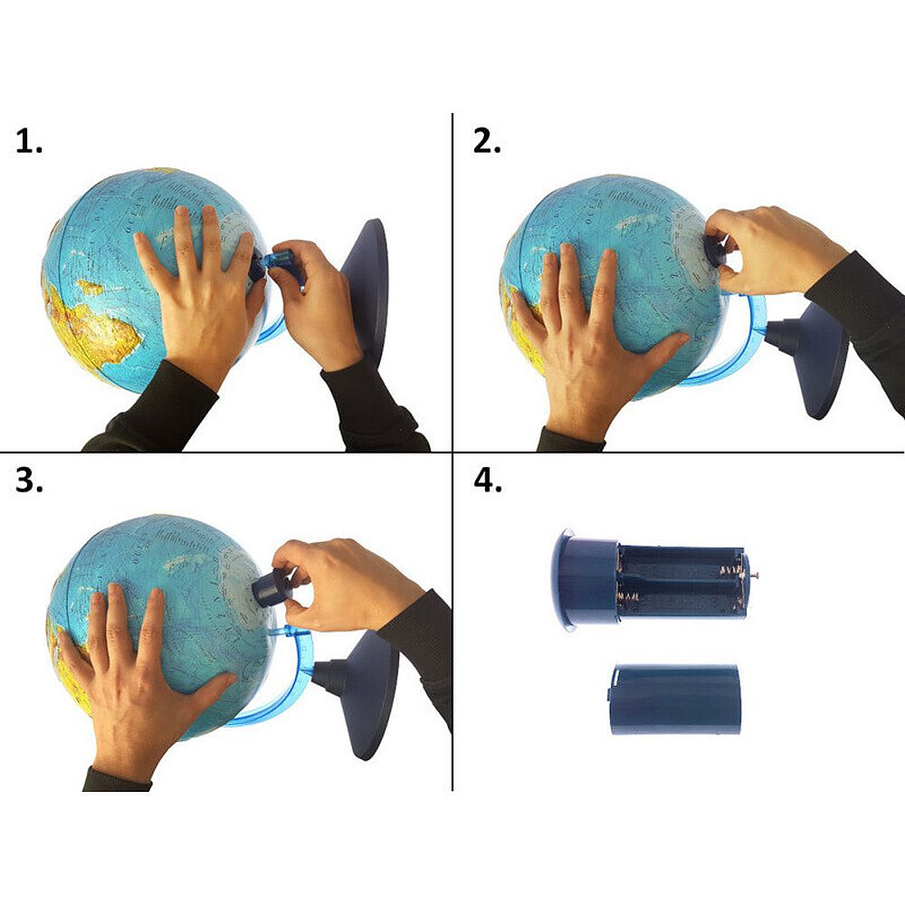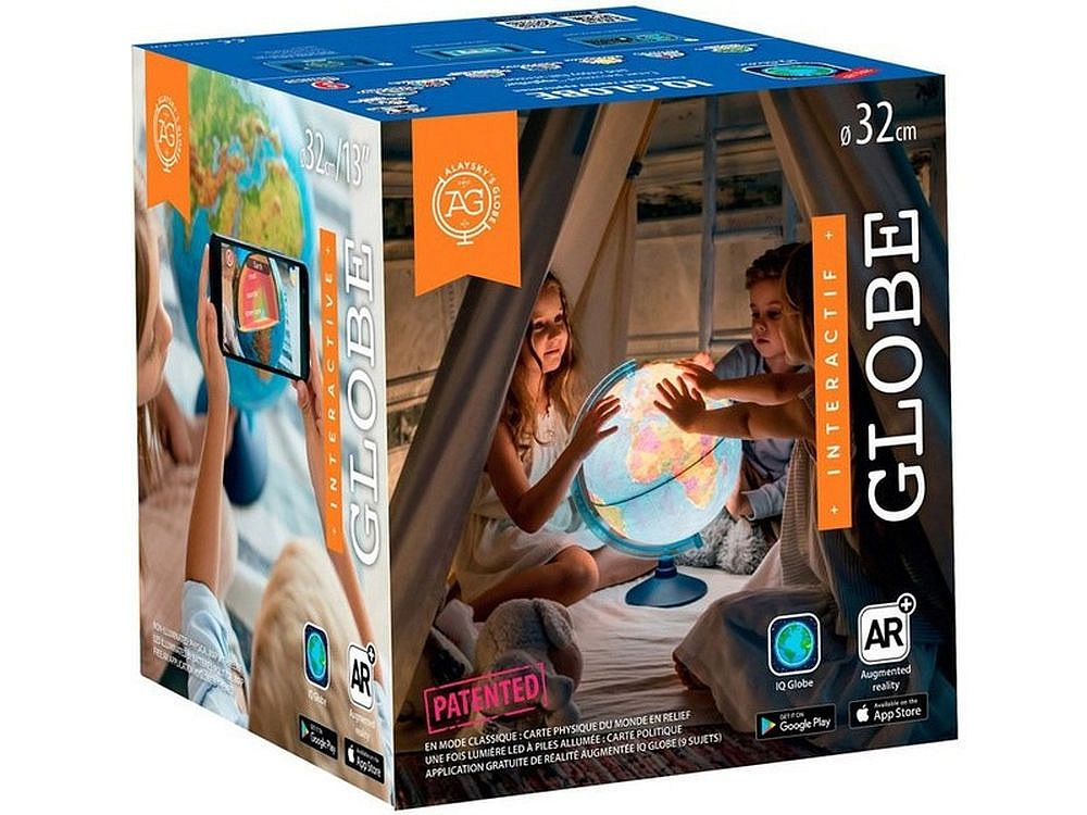 Interaktivní glóbus o průměru 32 cm s funkcí rozšířené reality. Povrch je provedený ve 3D reliéfu se skutečnými horami. Do glóbusu je zabudované LED osvětlení, v modulu, který se vkládá ze spodní části do glóbusu. Napájení zajišťují 2 kusy AA baterie, které nejsou součástí balení. (Doporučujem pořídit u nás v e-shopu). Všechny popisky jsou v češtině a jsou dostatečně veliké.