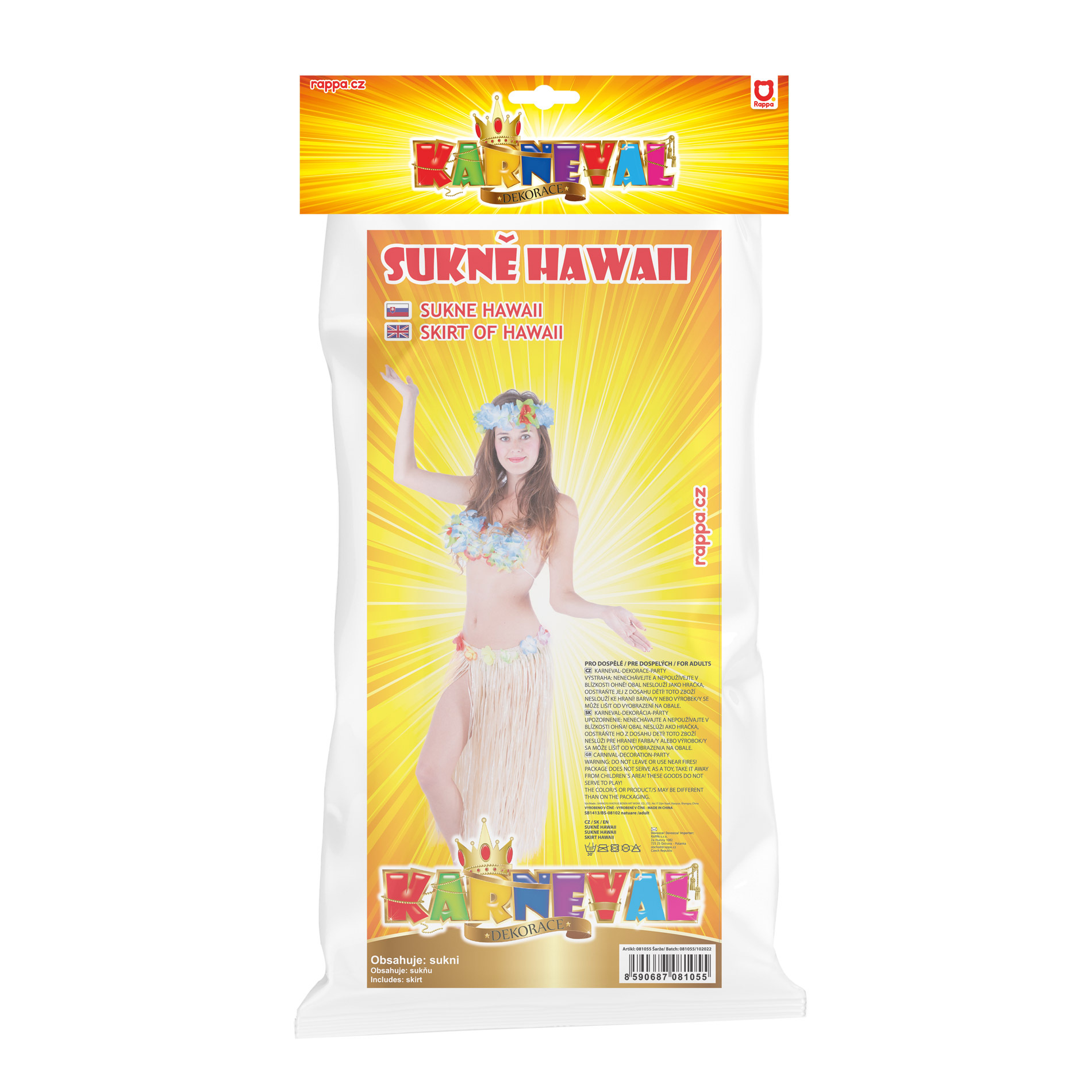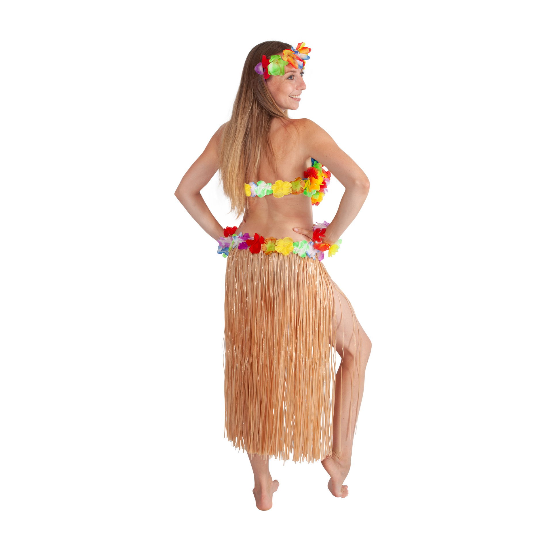 Niesamowita spódnica w stylu "Hawaii" to pozycja obowiązkowa dla każdej kobiety! Spódniczka jest przeznaczona dla dziewczynek w wieku 3-10 lat (104-150 cm). Ten rewelacyjny element jest idealnym dodatkiem do karnawału lub typowego hawajskiego tańca "HULA". Spódniczka o długości 45 cm wykonana jest z cienkich plastikowych pasków w naturalnym kolorze i ozdobiona kolorowymi płatkami. Świetnie! Zostań gwiazdą karnawałowej imprezy w tej hawajskiej spódnicy lub stwórz cały hawajski kostium! Opakowanie zawiera tylko spódnicę.
