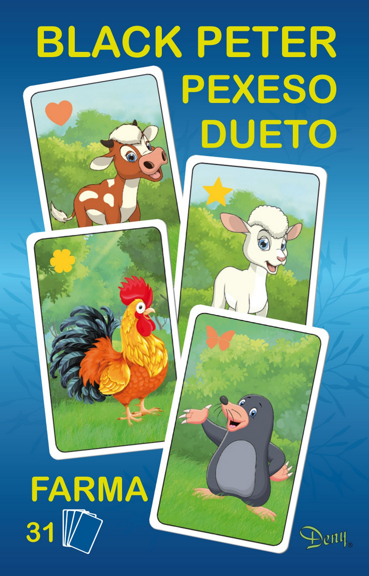 Klasyczna gra karciana Czarny Piotruś z obrazkami. Gra składa się z 31 kart, które są podzielone na 15 par, z których każda jest oznaczona tym samym obrazkiem. Tylko jedna karta różni się od pozostałych i jest to Czarny Piotruś. Wygrywa ten, kto pierwszy ułoży pary. Przegrywa ten, kto trzyma Czarnego Piotrusia. W grze może brać udział co najmniej 3 graczy. W zestawie znajduje się 31 kart i 1 instrukcja. Wszystkie dzieci, które kochają zwierzęta hodowlane, pokochają ten zestaw kart.