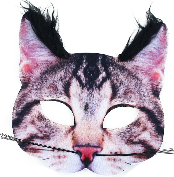 Rewelacyjna maska na twarz z motywem białego tygrysa. Maska jest utrzymywana przez gumową opaskę, kt