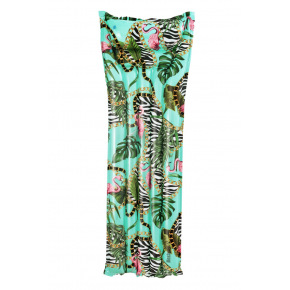 Dmuchany materac z motywem dzikich zwierząt. W szczególności dwie komory na poduszkę i trzecia na sam leżak. Wykonane z bardzo wytrzymałego winylu. Zawory bezpieczeństwa ułatwiające napełnianie i opróżnianie. Wymiary: 183 x 69 cm Udźwig 90 kg.
