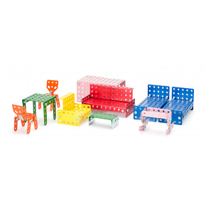 Ponořte se do světa kreativity a zábavy se stavebnicí kovového nábytku do domečku pro panenky od společnosti Merkur. Tato jedinečná sada je ideálním nástrojem pro rozvoj technických dovedností a představivosti dětí. Díky kovovým dílkům si malí stavitelé mohou postavit vlastní nábytek do domečku pro panenky a rozmístit si ho podle svých představ. Stavebnice obsahuje kvalitní kovové díly, které se snadno spojují šroubky, což podporuje rozvoj jemné motoriky, logického myšlení a soustředění. Děti se naučí sestavovat jednotlivé díly tak, aby vytvořily jednotlivé kusy nábytku do domečku, který pak mohou využít při hře se svými panenkami. Po sestavení získáte: 2 x postel, 1 x pohovku, 1 x komodu, 1 x křeslo, 1 x konferenční stolek, 1 x jídelní stůl, 2 x židli a 1 x kolébku. Stavebnice je kompatibilní s domečkem pro panenky 48001. Sada obsahuje: 219 dílů. Úroveň Merkur obtížnosti: 3. Baleno v krabičce. Rozměry balení: 18 x 26 x 5 cm. Věk: 5+