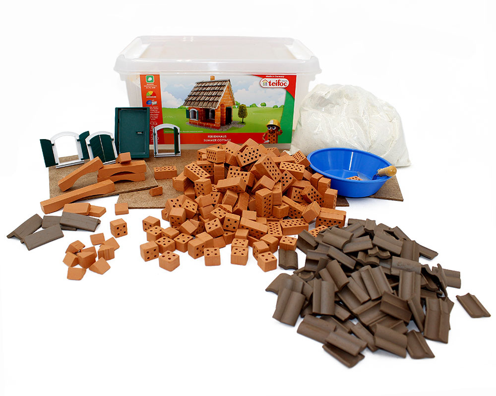 Zažij pocity opravdových stavebníků, rozmíchej maltu, namaž cihly, postav dům či hrad, rozmoč, osuš - a můžeš stavět znovu. Stavebnice ze skutečných cihel spojovaných kukuřičnou maltou trénuje nejen jemnou motoriku, ale podněcuje i kreativitu dětí. Vyrobeno v Německu. Rozměr krabice: 33 x 24 x 16 cm (320 ks) Vhodné pro děti od 6 let.