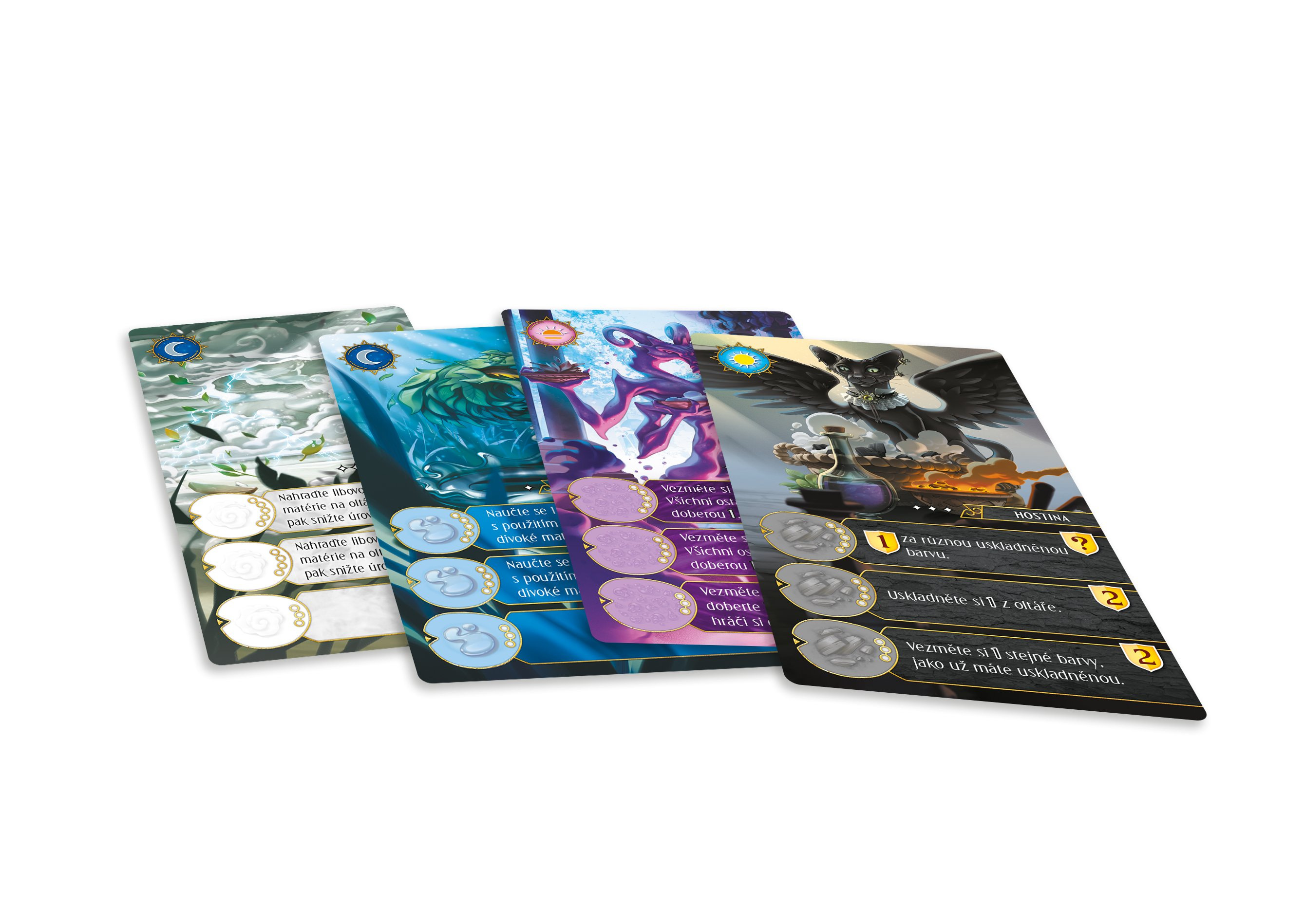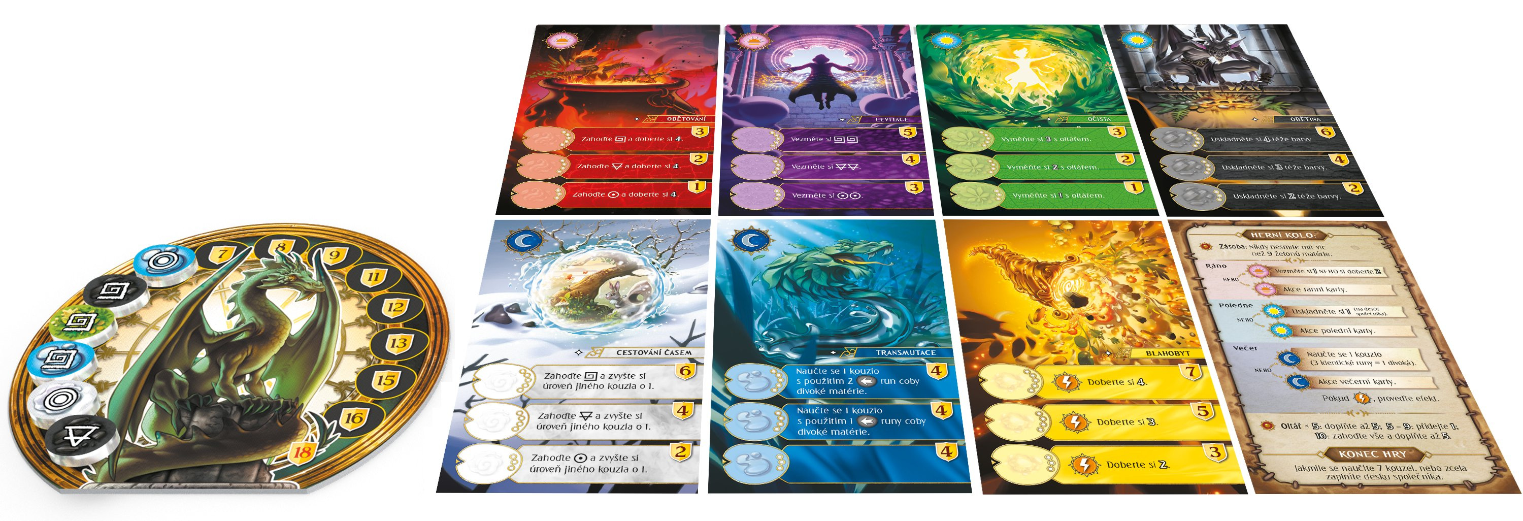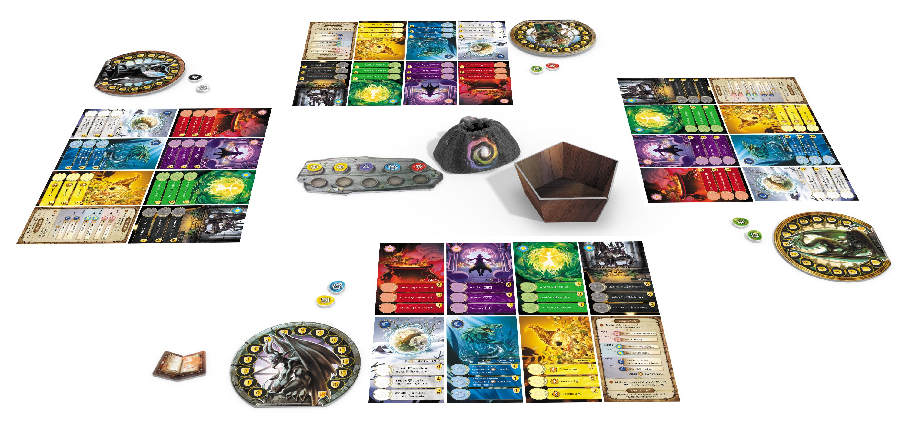 OBSAH BALENÍ: 84 karet kouzel 105 žetonů matérie 1 deska oltáře 4 desky společníků 4 karty nápovědy pro hráče 1 měšec magického víru 1 žeton prvního hráče 1 odhazovací krabička 1 česká a slovenská pravidla