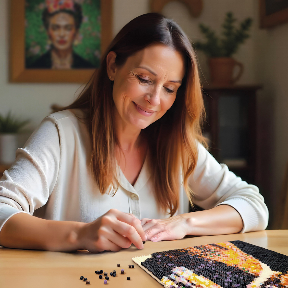 Zestaw zawiera matę dla konia, 1 200 naprasowywanych koralików i wzory. Na macie dzieci tworzą mozaiki, używając kolorowych koralików zgodnie ze swoją wyobraźnią lub dołączonymi instrukcjami. Zdjęcia mogą być prasowane i używane jako dekoracja. Istnieje możliwość zakupu dodatkowych kolorów koralików, oddzielnych podkładek i książek z inspiracjami. Kulki nie zawierają PVC. Zestaw zawiera 1200 koralików, szablon i naklejki na grzywę i ogon. Wiek: 5+