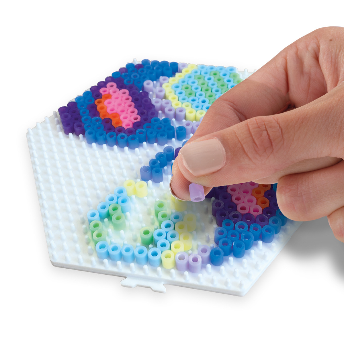 Koraliki zapachowe do naprasowania. Na macie dzieci tworzą mozaiki, używając kolorowych koralików zgodnie ze swoją wyobraźnią lub dołączonymi instrukcjami. Zdjęcia mogą być prasowane i używane jako dekoracja. Istnieje możliwość zakupu dodatkowych kolorów koralików, oddzielnych podkładek i książek z inspiracjami. Kulki nie zawierają PVC. Opakowanie zawiera 5000 koralików, konika i motylka Wiek: 5+