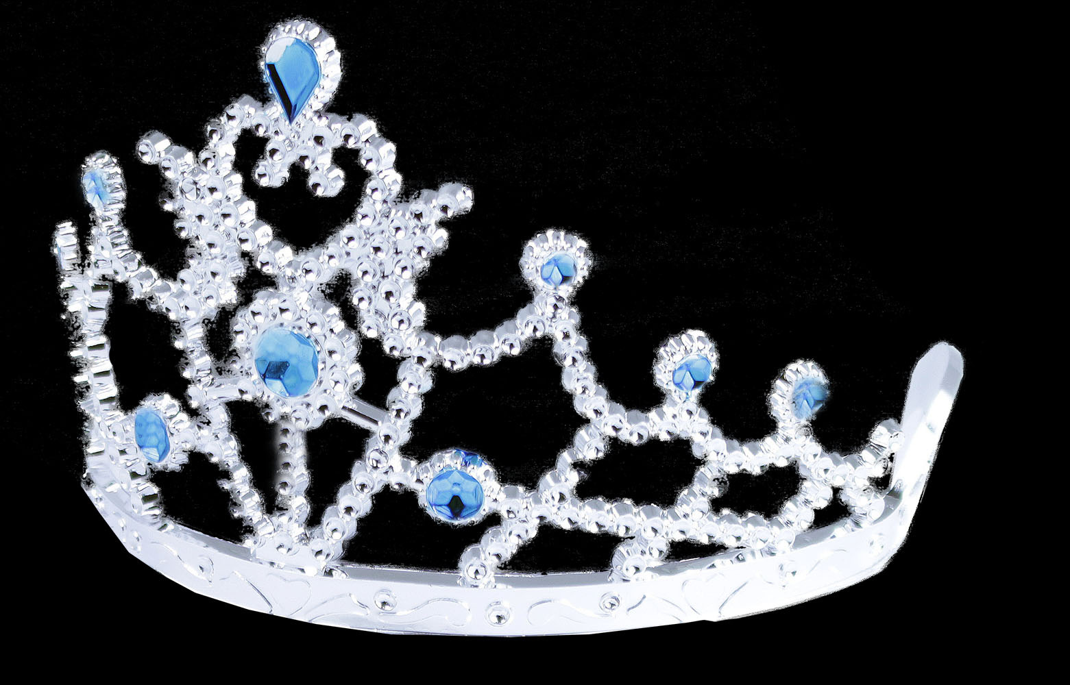 Piękna korona dla śnieżnych księżniczek. Korona ozdobiona jest niebieskimi elementami i niepowtarzalnym kamieniem dekoracyjnym pośrodku. Zalecane dla dziewczynek w wieku od 3 lat.