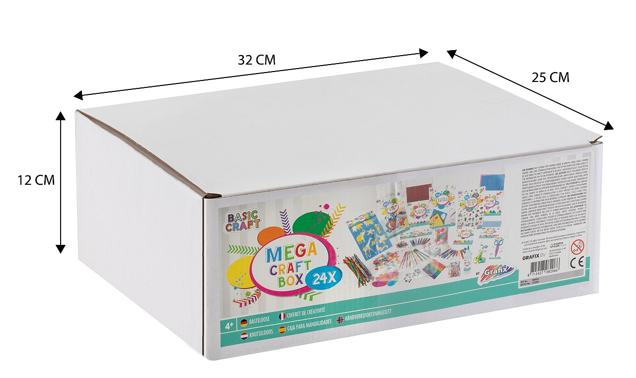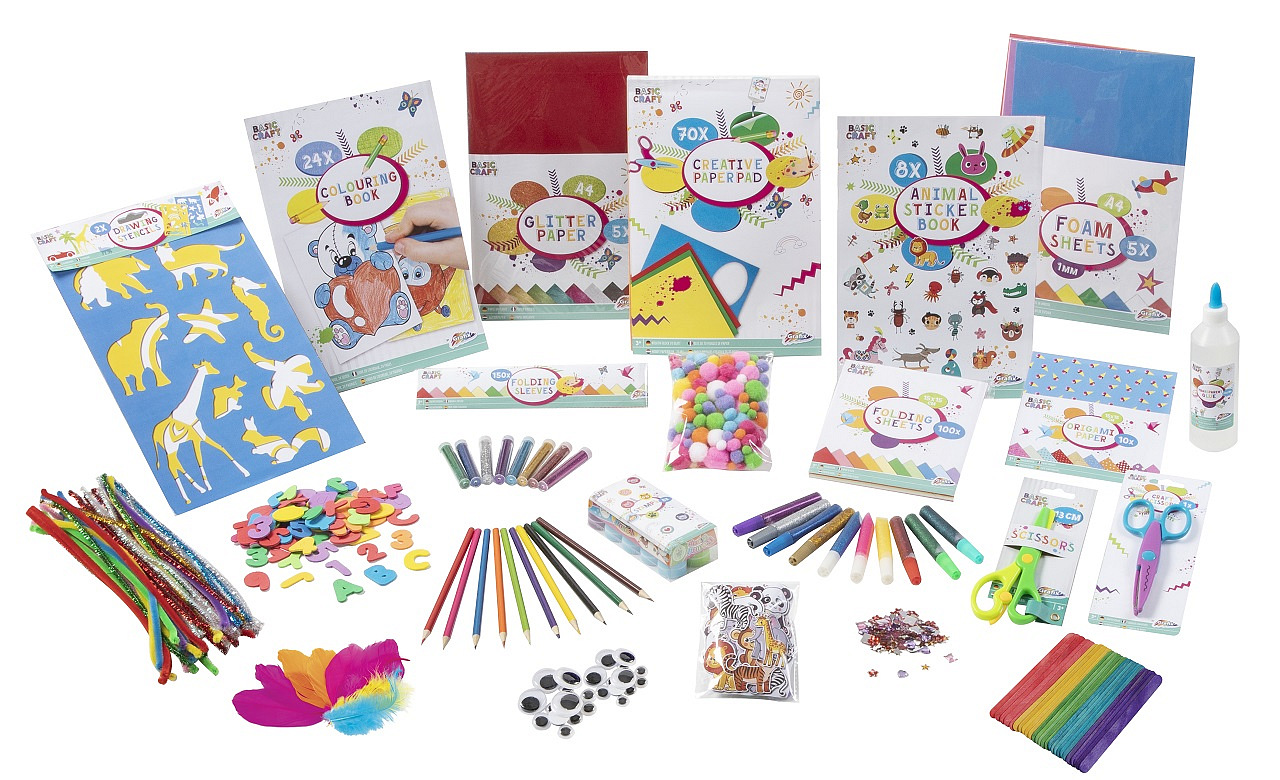 Box plný komponentů ke kreativnímu tvoření. Box obsahuje téměř 1000 dílů. Barevné papíry, pastelky, nůžky, očíčka, šablony, písmenka, peříčka, lepidlo, bambulky, kamínky… Spoustu věcí ke kreativnímu tvoření.