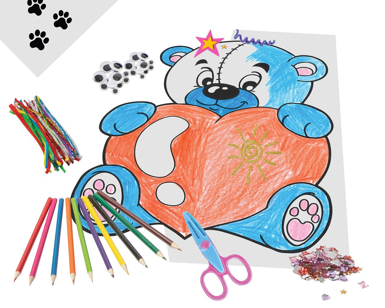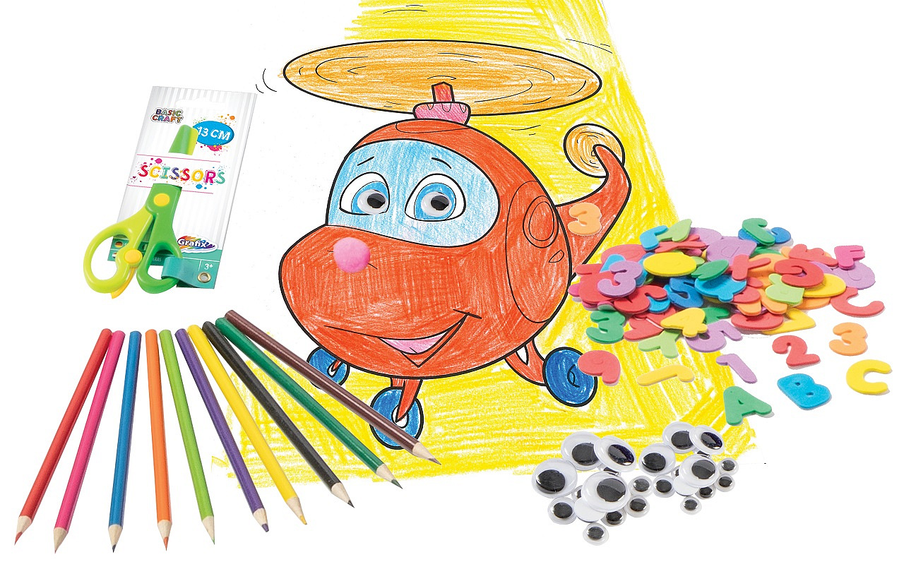 Box plný komponentů ke kreativnímu tvoření. Box obsahuje téměř 1000 dílů. Barevné papíry, pastelky,