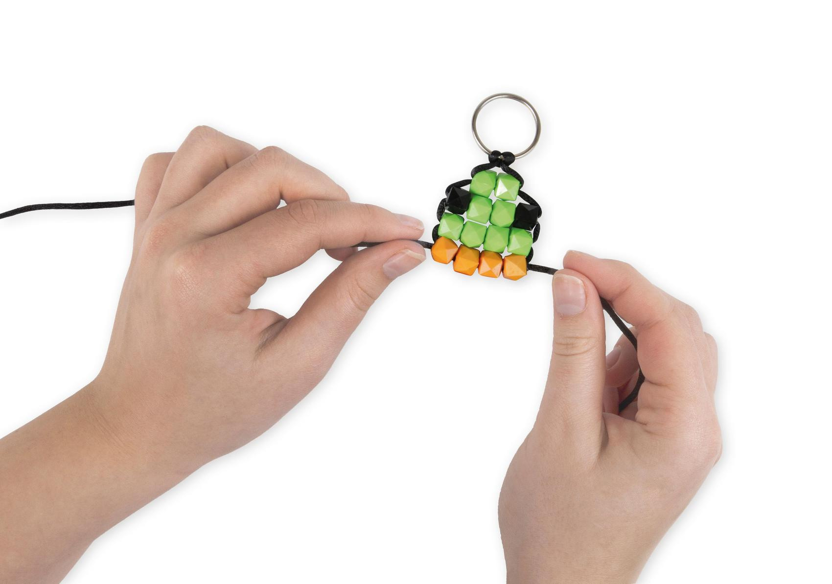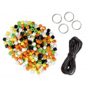 Kompletní sada pro výrobu 4 talismánků. Obsahuje 250 módních barevných korálků, černou šňůrku a 4 kroužky na klíče.