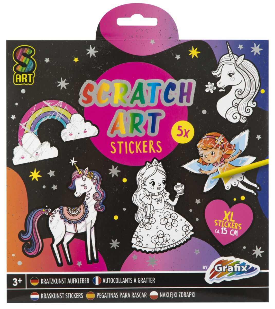 Kreatywny zestaw zawiera 5 sztuk zdrapywanych naklejek i rysik do zdrapywania, rozmiar naklejki to około 15 cm