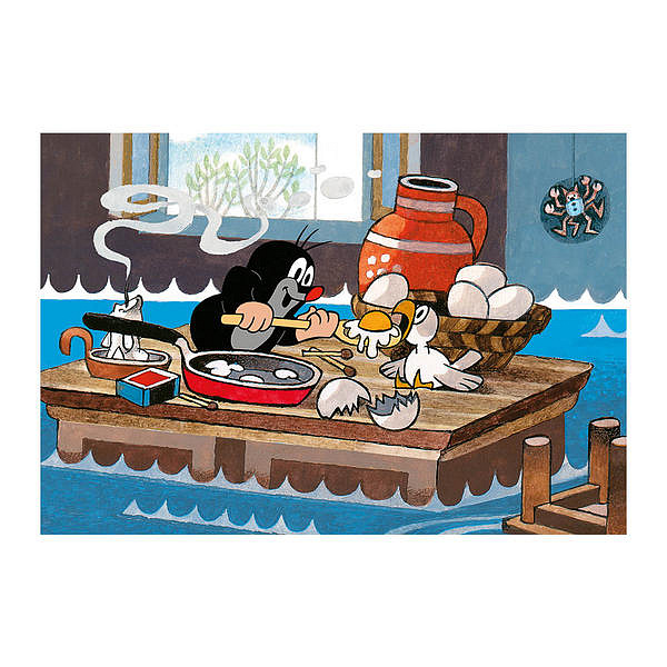 Puzzle z motywem Jak kret wyleczył mysz, składające się z 60 elementów. Wymiary złożonego obrazka to 23,5 x 21,5 cm. Odpowiednie dla dzieci w wieku od 5 lat.