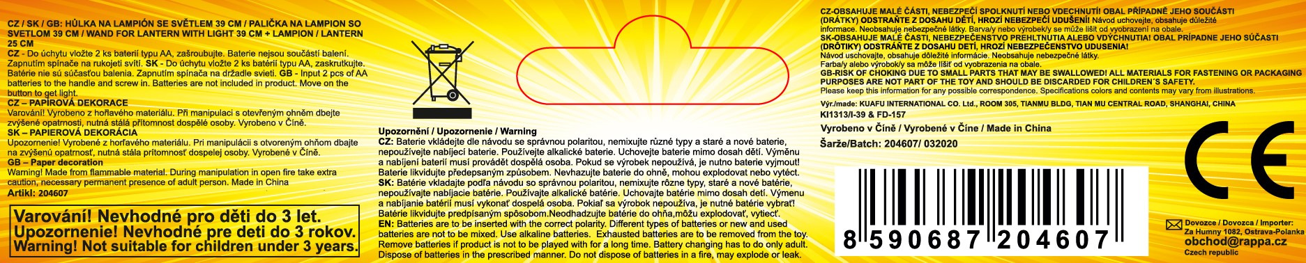 Papierowy lampion z pająkiem i świecącym patyczkiem! Okrągły lampion wykonany jest z papieru i posiada świecznik na dole. Ten fajny element zapewni świetną atmosferę na imprezie Halloween lub paradzie lampionów! Różdżka wymaga 2 baterii AA, które nie są dołączone do zestawu. Po naciśnięciu przełącznika na uchwycie różdżka zapala się.