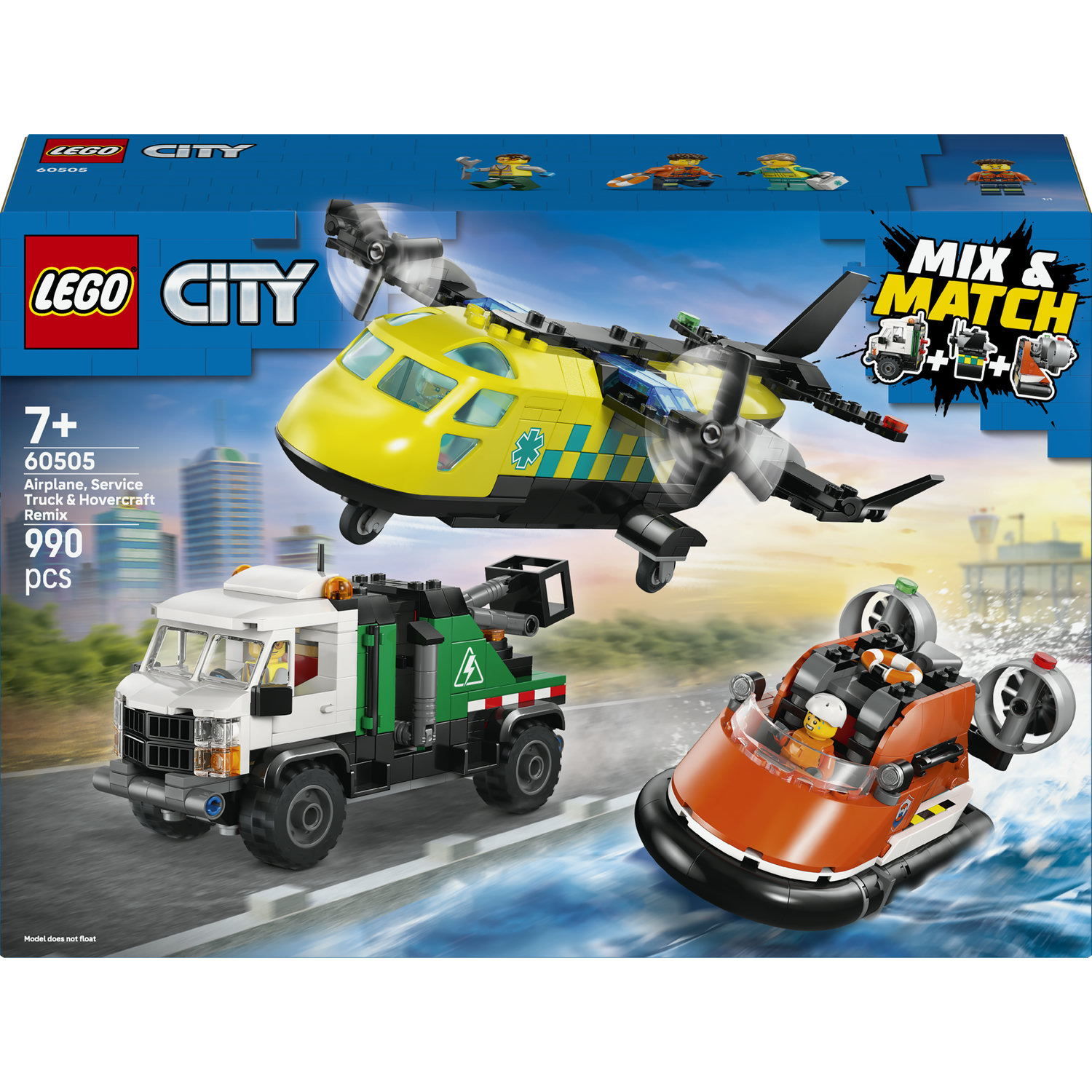 Opis LEGO® City 60505 Remix: Letadlo, servisní vůz a vznášedlo
