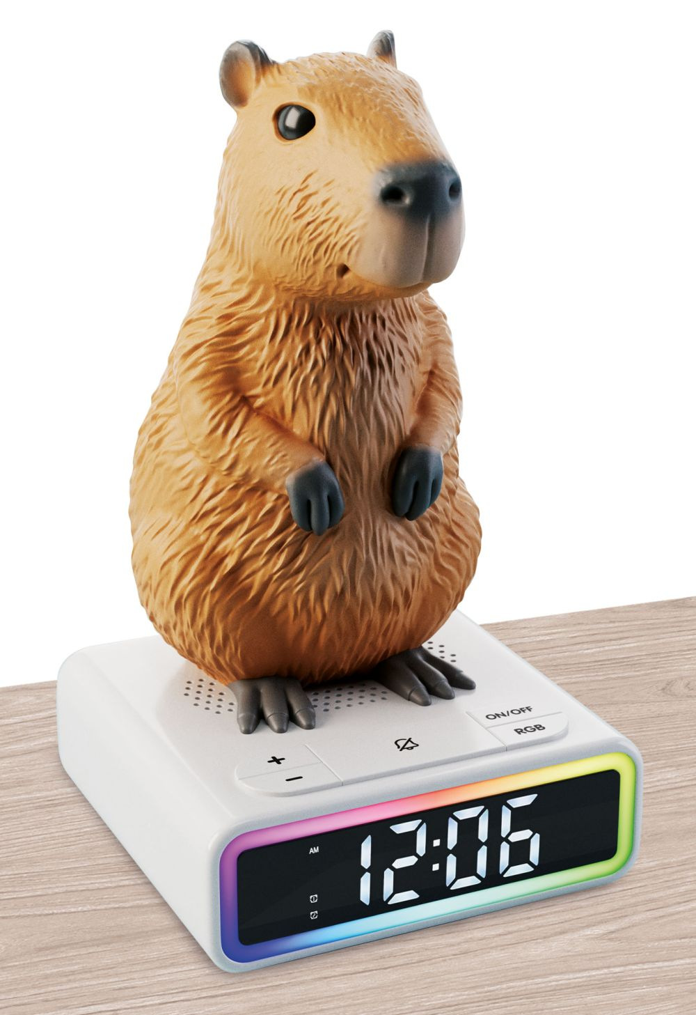Zábavná kapybara vám dělá společnost roztomilým digitálním budíkem, který mění barvy. Probuďte se zábavným a veselým způsobem se spoustou exkluzivních vyzváněcích melodií a písní!