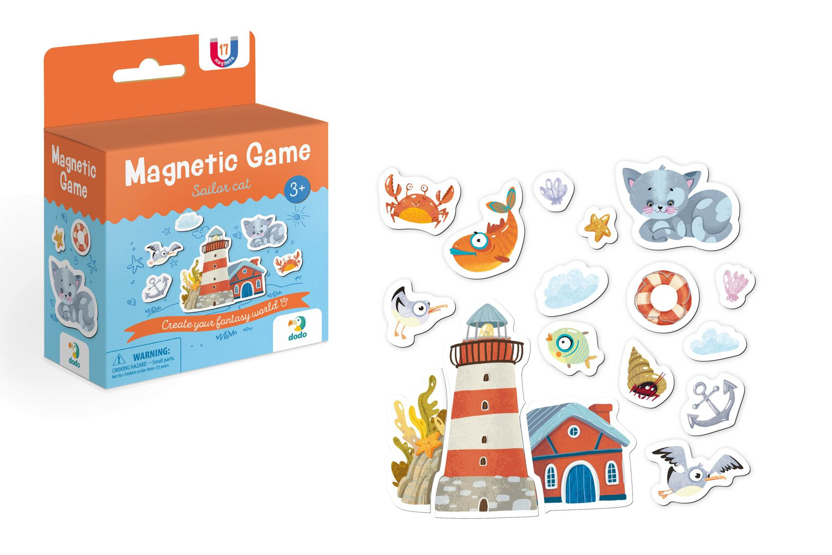 Opis DODO Gra magnetyczna Kot z latarnią morską plastik 20szt w pudełku 10x14x5cm