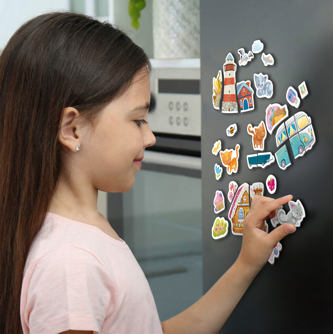 Magnetická hra Kočka a maják obsahuje 20 magnetických dílků, které dětem umožňují vytvářet různé scény. Rozměr krabičky: 10 x 14 x 5 cm Vhodné od 3 let