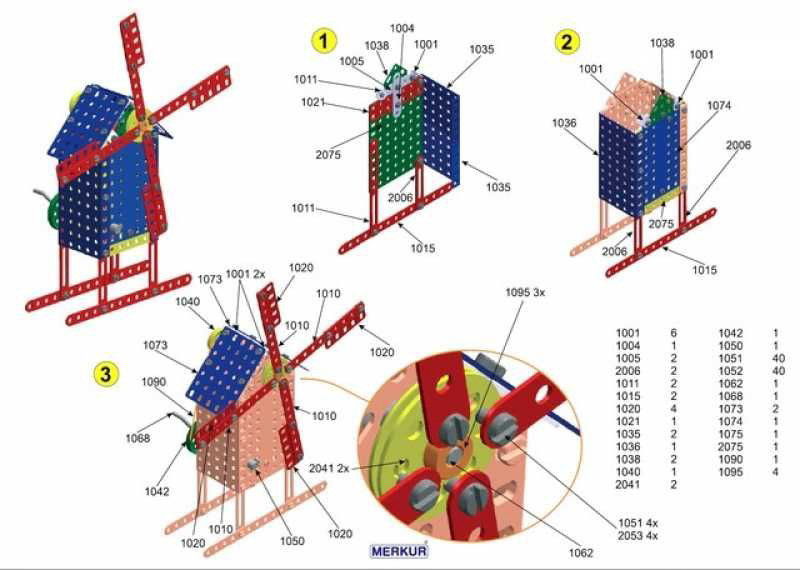 Z zestawu Merkur 019 Mill można zbudować do 10 różnych modeli atrakcji wesołego miasteczka zgodnie z instrukcją. Mali inżynierowie mogą również zbudować model według własnego pomysłu, wyobraźnia nie ma granic. Zestaw zawiera 181 elementów. Nadaje się również dla dzieci, które dopiero zaczynają przygodę z Merkurym. Zmontowanymi modelami można się bawić, są bardzo wytrzymałe. Rozmiar opakowania: 26 x 18 x 5 cm. Wiek: 5+. Nieodpowiednie dla dzieci w wieku poniżej 3 lat.