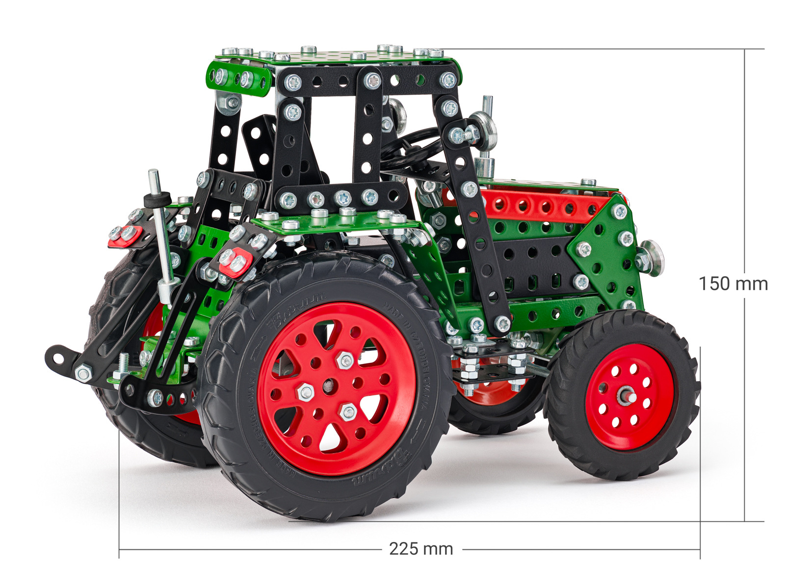 Ponořte se do světa kreativity a zábavy se stavebnicí Traktor 4x4 od společnosti Merkur. Tato jedinečná sada je ideálním nástrojem pro rozvoj technických dovedností a představivosti dětí. Díky kovovým dílkům si malí stavitelé mohou postavit zelený traktor 4 x 4. Stavebnice obsahuje kvalitní kovové díly, které se snadno spojují šroubky, což podporuje rozvoj jemné motoriky, logického myšlení a soustředění. Sada obsahuje: 567 dílků. Úroveň Merkur obtížnosti: 3. Baleno v krabičce. Rozměry traktoru: 15 x 13 x 22,5 cm. Rozměry balení: 27 x 36 x 5,5 cm. Věk: 5+