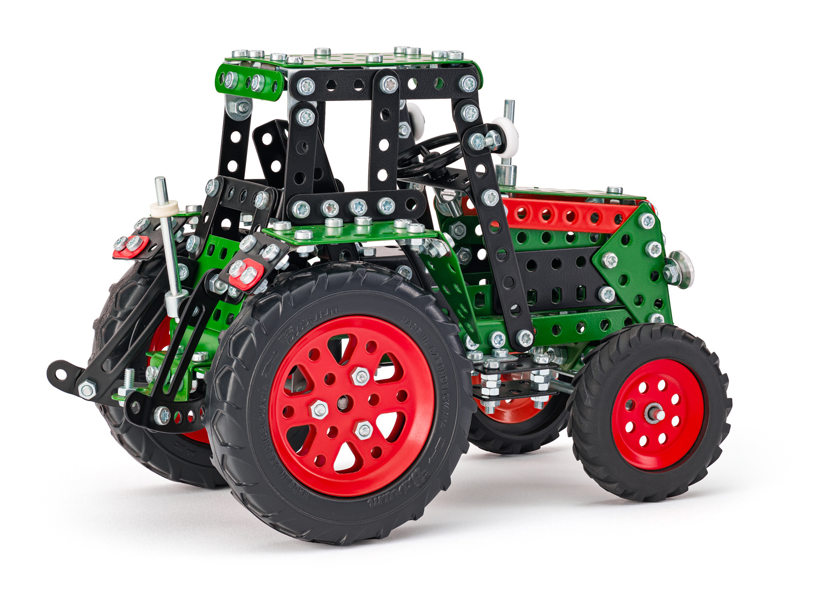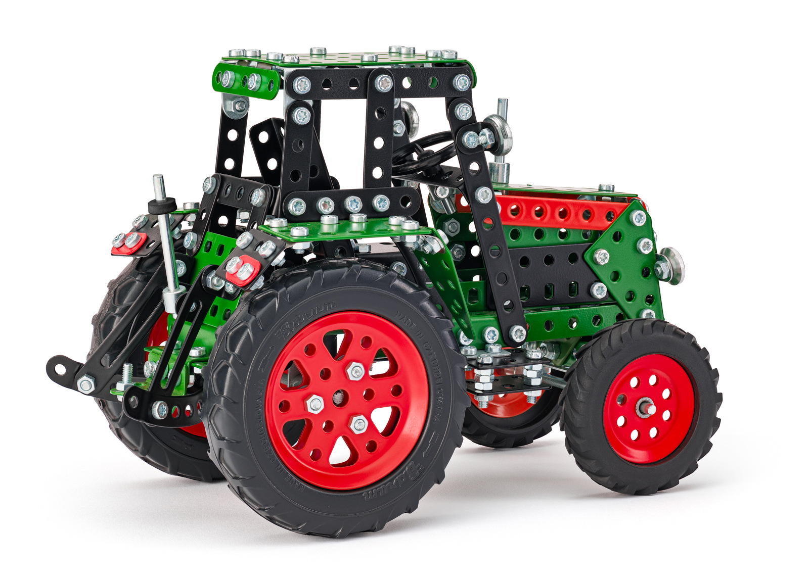 Duży, czterowarstwowy, klasyczny zestaw. Zestaw ten jest bardzo popularny ze względu na bogactwo poszczególnych części i możliwość budowy wielu modeli. Zestaw ten zawiera większość tych samych części, co Merkur M5, a także wiele innych części, takich jak duże koła ciągnika, koła zębate, długie kąty, pasy itp. Do zestawu dołączona jest obszerna instrukcja zawierająca instrukcje budowy 100 różnych modeli, takich jak traktor, duży dźwig, koparka kołowa, ciężarówka itp. Zestaw może być używany do budowy przekładni i dużych maszyn. Młody projektant ma wystarczająco dużo części, aby budować modele zgodnie ze swoją wyobraźnią. Zestaw zawiera 957 elementów. Rozmiar opakowania: 54 x 36 x 6 cm. Wiek: 5+. Nieodpowiednie dla dzieci w wieku poniżej 3 lat.