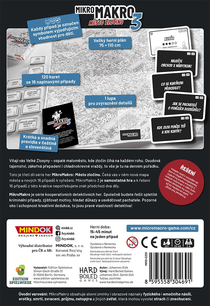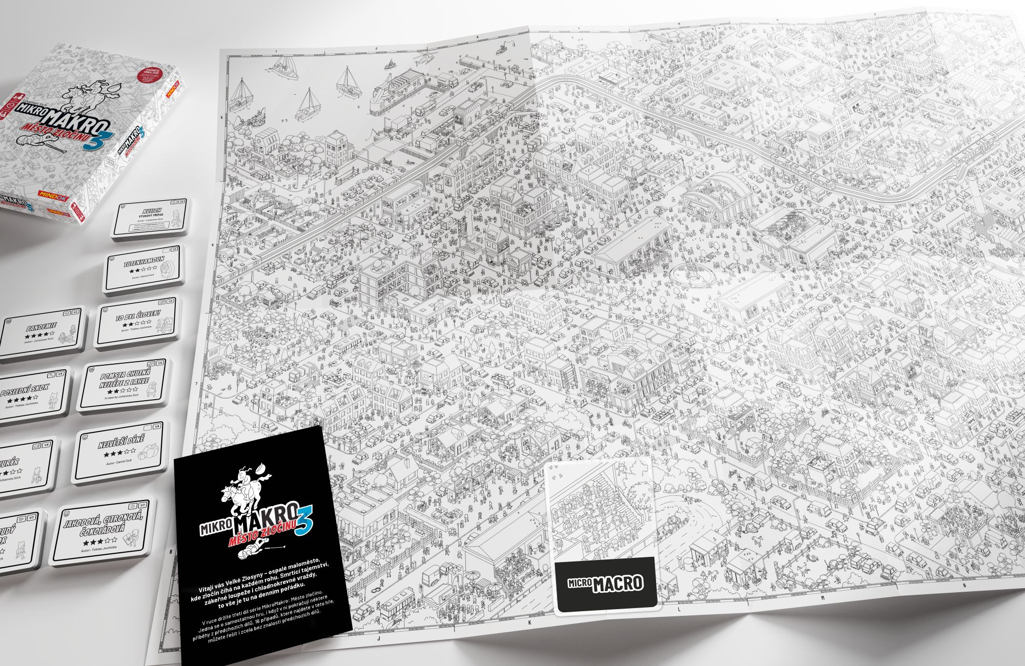 Toto je třetí díl série her MikroMakro: Město zločinu. Čeká vás v něm nová mapa města a nových 16 případů k vyřešení. MikroMakro 3 je samostatná hra a k řešení 16 případů z této krabice nepotřebujete znát předchozí dva díly.