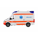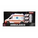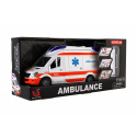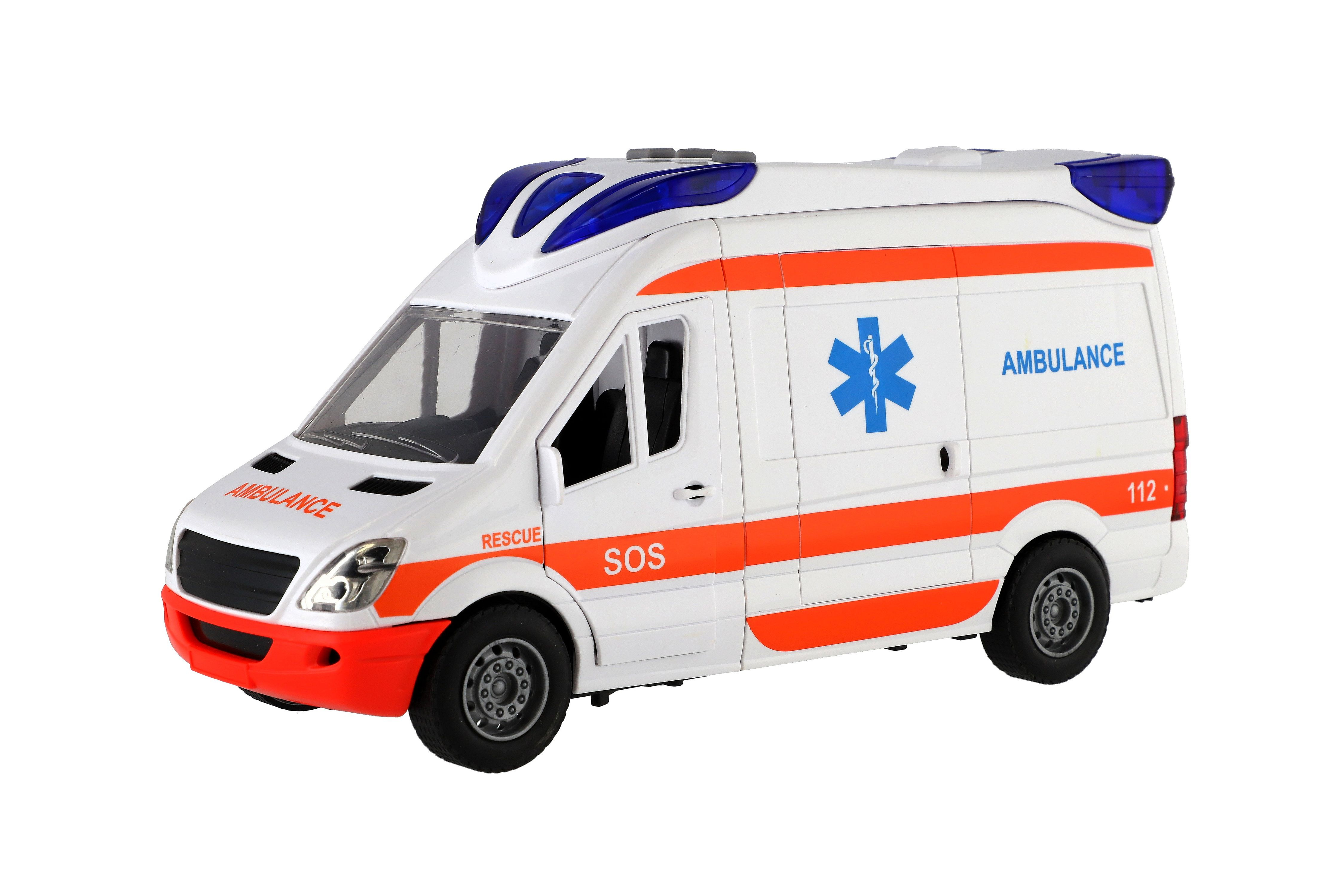 Ambulance je vozidlo, které se využívá při přepravě zraněných pacientů, k dopravě raněných nebo nemocných. Navíc ambulance disponuje lehátkem pro převoz pacientů. Baterie 2x AA jsou součástí výrobku. Ambulace má otevírací dveře a je na setrvačník. Vyrobeno z kvalitního a odolného plastu. Velikost auta je 26 cm. Rozměry balení 37 x 18 x 11,5 cm Vhodné pro děti od 3 let.