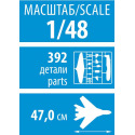 Model letadla ke slepení. Velikost: 1:48; 47 cm. Balení obsahuje: 392 dílků ke slepení.