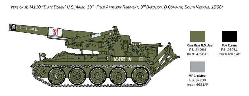 informacje o oryginale: Samobieżne haubice serii M-110 przez wiele lat stanowiły trzon artylerii polowej armii Stanów Zjednoczonych. Były one również używane w dużych ilościach przez amerykańskich sojuszników. Maszyna ta weszła do użytku w latach 60. ubiegłego wieku. lat, ale ulepszenia wprowadzone do wersji M-110 A1 z 1977 roku zwiększyły jego skuteczność operacyjną. Główną bronią zmodernizowanej wersji było nowe działo dalekiego zasięgu 203 mm, M201, które mogło korzystać z szerokiej gamy amunicji. Cała koncepcja stanowiła doskonałe połączenie siły ognia i mobilności, co było zasługą niezawodnego podwozia (takiego samego jak w M-107). M-110 A1 został przydzielony do artylerii dywizyjnej, gdzie miał wykonywać zadania ogólnego wsparcia, odwetowego ognia przeciwartyleryjskiego i ognia osłonowego skierowanego na pozycje wroga. Był intensywnie wykorzystywany podczas wojny w Libanie i pierwszej wojny w Zatoce Perskiej.