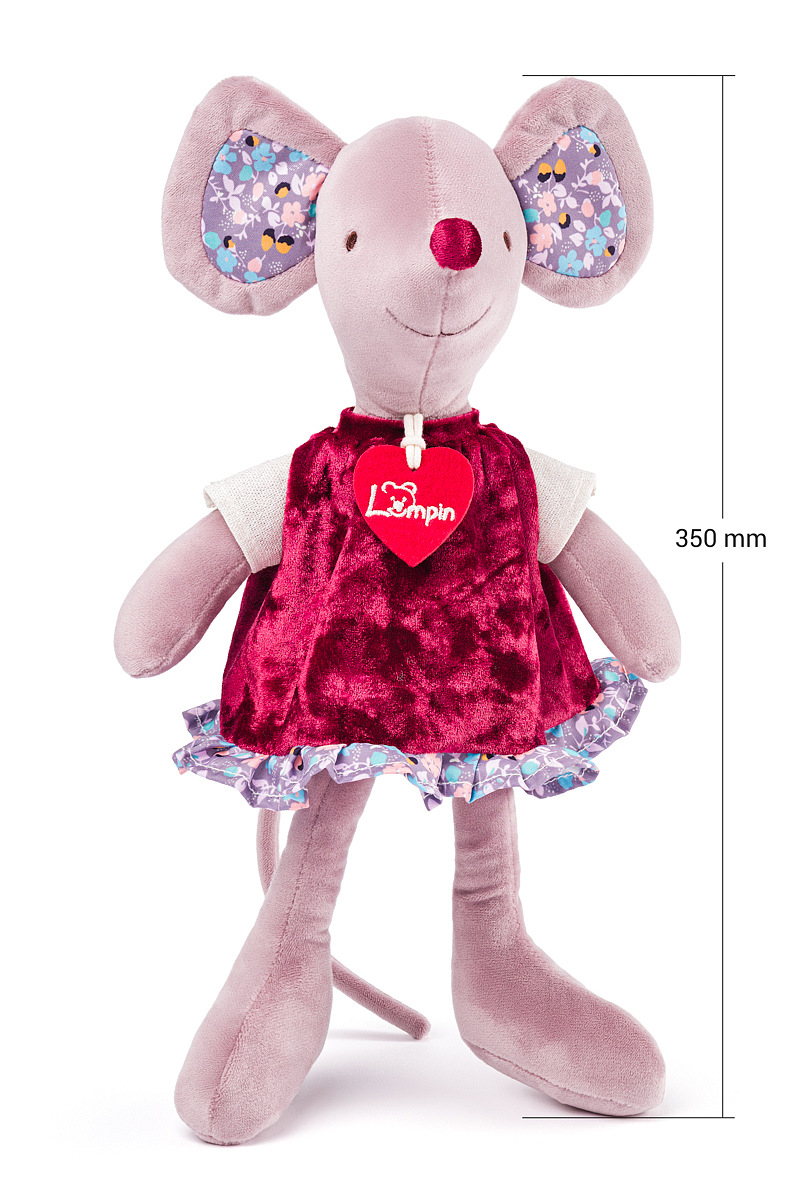Každý plyšák z naší kolekce má své jméno a svůj vlastní příběh, který najdete v knížečce u každého z nich. Myška Petit plánuje převzít vedení v místním obchodě s potravinami. V poličce se sýry chce umístit cedulku s vlastní značkou a textem: „Tento sýr vybral odborník“. Jednou týdně tu chce pořádat pravé italské ochutnávky sýrů pro myši. Má detailní plán, mapku i falešnou jmenovku „Vedoucí oddělení sýrů“. Na krku nosí stejně jako její kamarádi Lumpinci červené srdíčko.