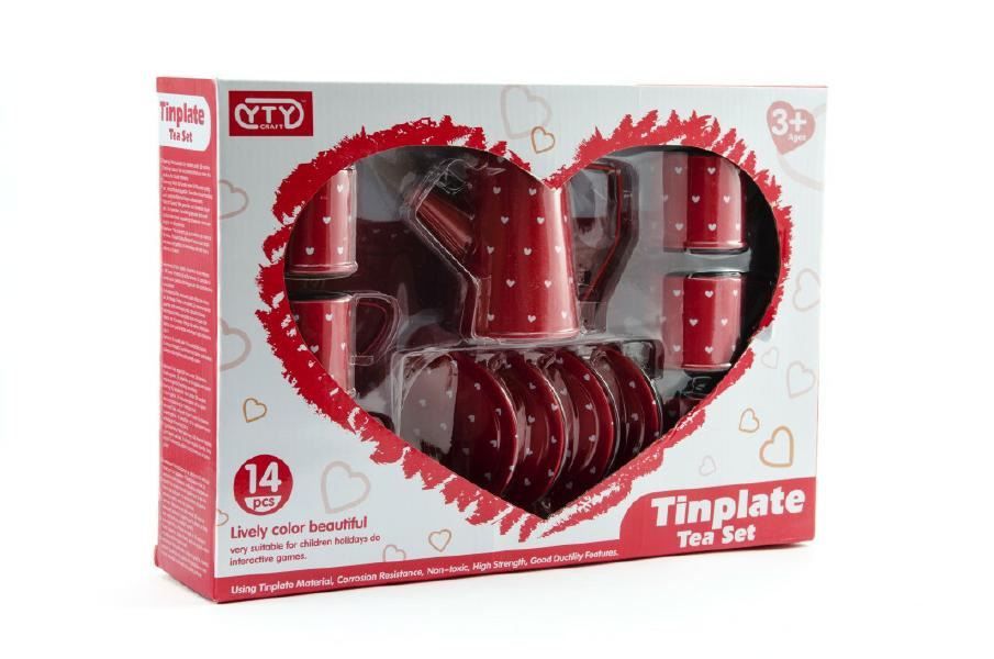 Teddies Zastawa stołowa czerwona puszka 14 szt. w pudełku 34x24cm