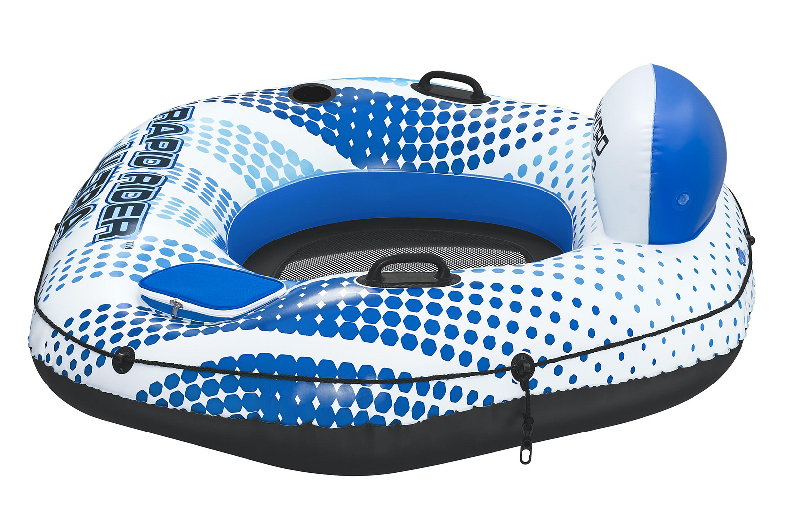Bestway® Nafukovací křeslo se síťkou Rapid Rider™ Ultra nabízí maximální komfort a vybavení pro relaxaci na vodě. Rapid Rider™ Ultra z odolného PVC materiálu Inflata-Shield™ s povrchovou technologii Color Shield™, která pomáhá chránit barvy před vyblednutím. Křeslo je vybaveno pevnými madly, lankem po celém obvodu, držákem na nápoje, chladícím boxem s vodotěsným zipem. Nafukovací křeslo je vybaveno opěrkou zad, která poskytuje optimální komfort při relaxaci na vodě. Síťované sedátko zajistí příjemné ochlazení během horkých letních dní a umožní vám naplno si vychutnat pobyt ve vodě. Pomocí spon Clasp 'N Go™ lze propojit více plavidel a užít si zábavu i s přáteli. Rychloupínací ventily umožňují snadné nafouknutí i vyfouknutí a následné uskladnění. Včetně opravné záplaty. Určeno pro 1 osobu. Maximální nosnost: 225 kg. Nafouknutá velikost křesla: 50 x 132 x 152 cm. Nenafouknutá velikost křesla: 148 x 165 cm. Rozměry balení: 30 x 39 x 14,5 cm. Používejte pouze pod dohledem dospělé osoby. Vě