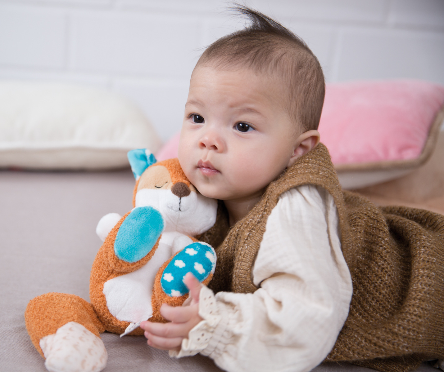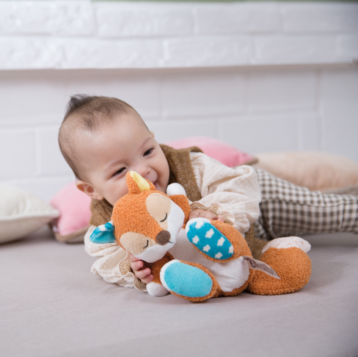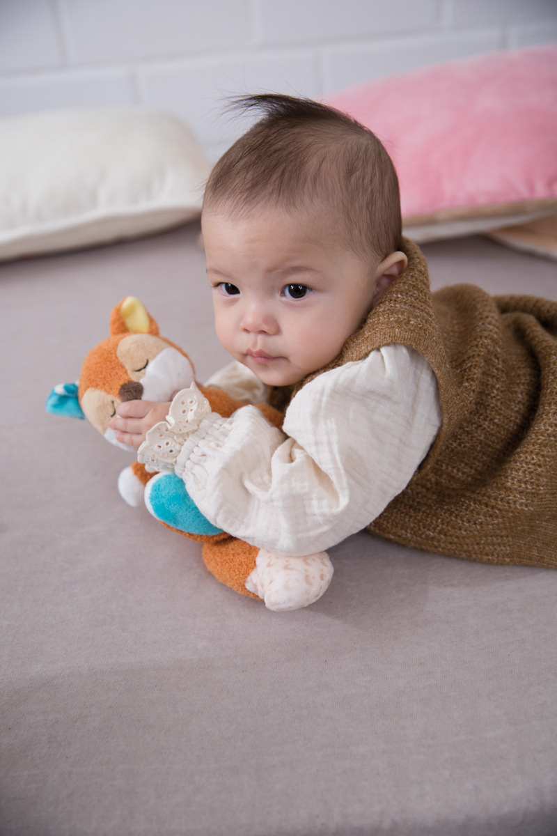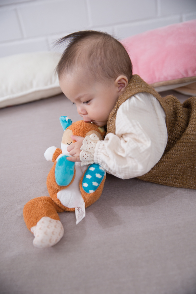 Przytulanka jest nieodzownym towarzyszem dla każdego maluszka do zabawy lub przytulania. Przytulanka krówka jest wykonana z bardzo miękkiego pluszowego materiału i dodatkowo posiada pierścień na smoczek oraz strukturalny gryzak z silikonu. Dzięki małym węzełkom jest łatwy do uchwycenia dla małych dziecięcych rączek. Czarujący design krówki w delikatnych kolorach to przytulny towarzysz zarówno dla chłopców, jak i dziewczynek. Zalecane delikatne pranie w 30°C. Wymiary: 25 x 25 x 7,5 cm. Wymiary opakowania: 31 x 12 x 8 cm. Wiek: 0 m+