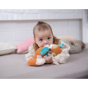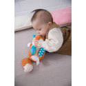 Przytulanka jest nieodzownym towarzyszem dla każdego maluszka do zabawy lub przytulania. Miś przytulanka jest wykonany z bardzo miękkiego pluszowego materiału, a dodatkowo posiada pierścień na smoczek oraz strukturalny gryzak z silikonu. Dzięki małym węzełkom jest łatwy do uchwycenia dla małych dziecięcych rączek. Zalecane delikatne pranie w 30°C. Wymiary: 25 x 25 x 7 cm. Wymiary opakowania: 31 x 12 x 7,5 cm. Wiek: 0 m+