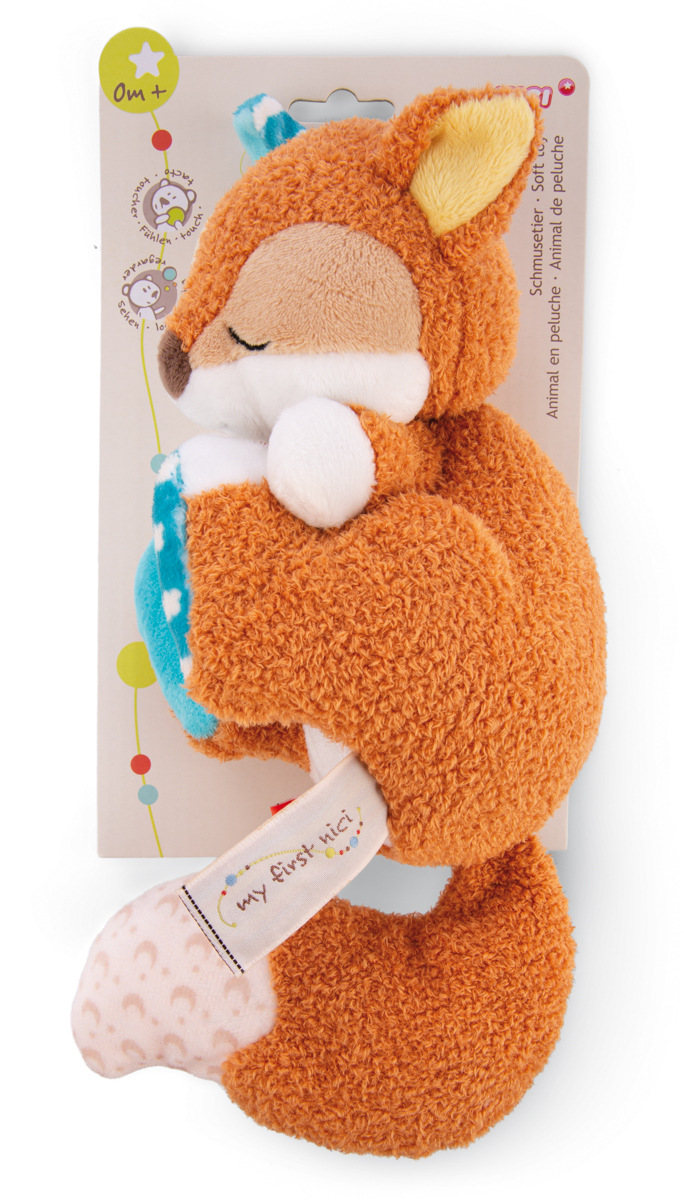 NICI Spící liška Finni je roztomilá plyšová hračka, která je vyrobena z velmi jemného plyše a napomáhá lepšímu usínání miminek. Liška spí na boku, má okouzlující design s dlouhým liščím ocasem a barevnými vzorovými akcenty v bílé a tyrkysové. Doporučeno šetrné praní na 30°C. Rozměr: 23 x 13 x 7 cm. Rozměr balení: 30 x 13 x 7,5 cm. Věk: 0 m+