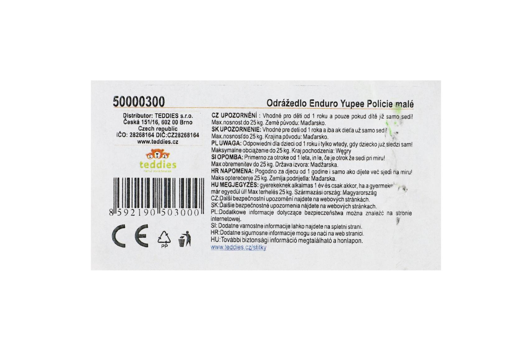 Teddies rowerek biegowy jeździk Enduro Yupee Police małe plastikowe wysokość siedziska 26cm nośność do 25kg 12m+